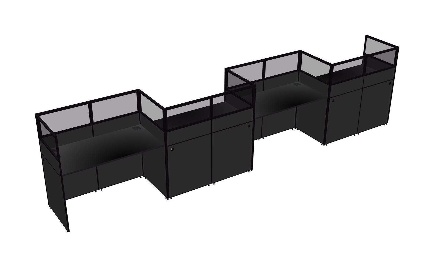 Black Rectangular Cubicle Workstations For 4 - Zigzag Formation