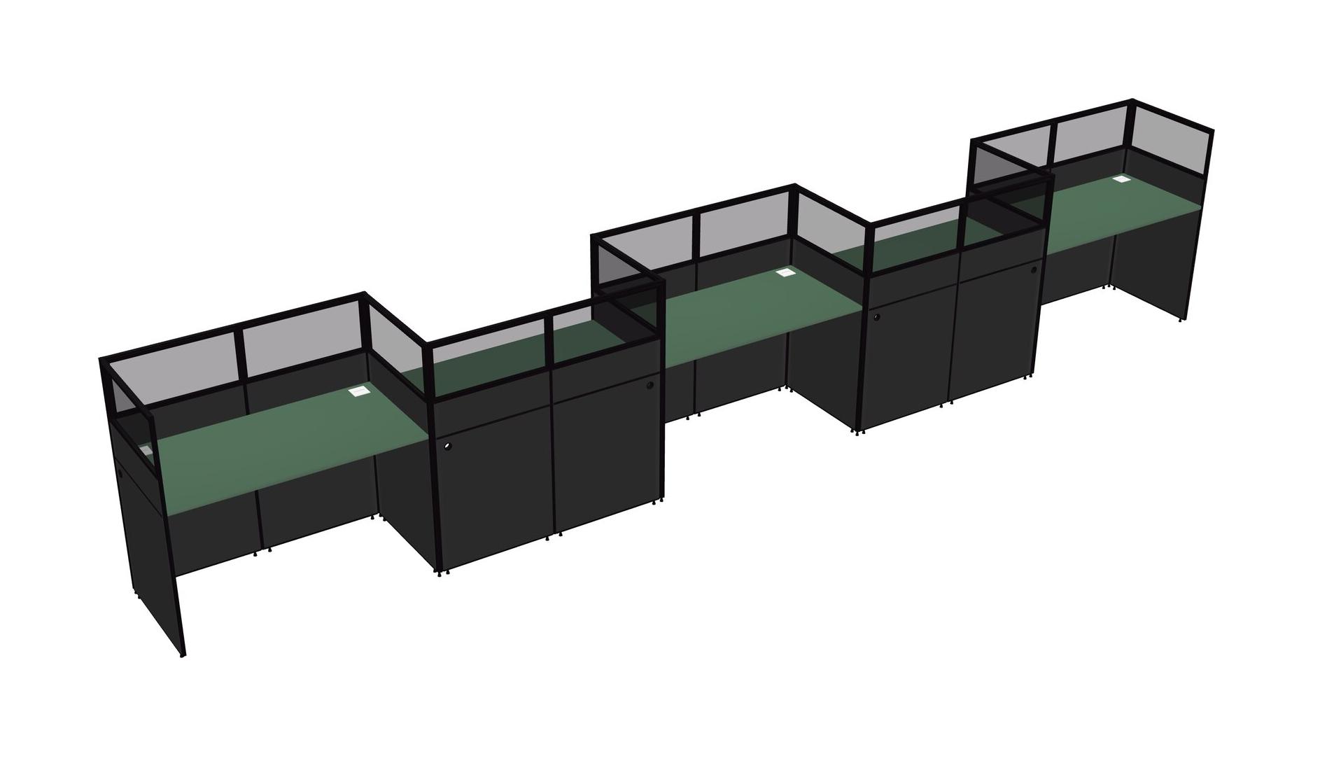 Green Rectangular Cubicle Workstations For 5 - Zigzag Formation
