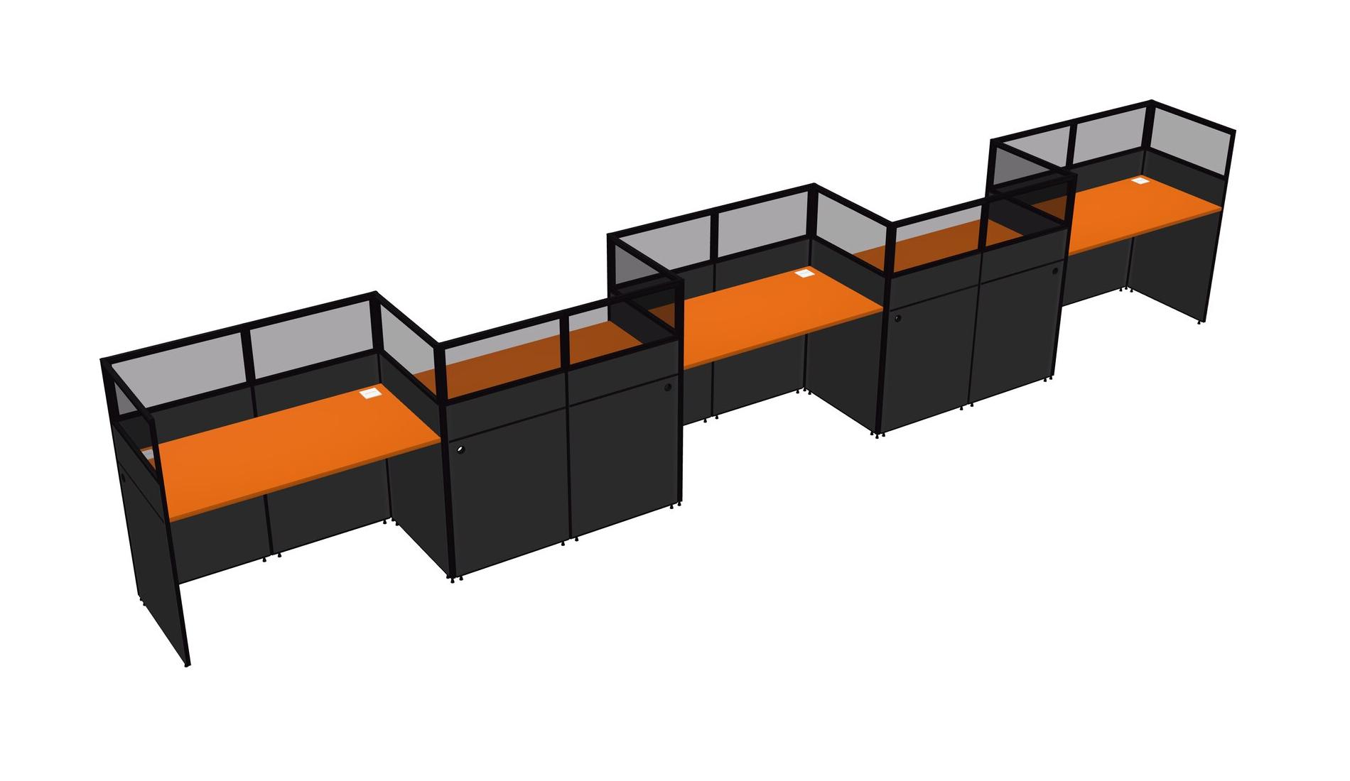Orange Rectangular Cubicle Workstations For 5 - Zigzag Formation