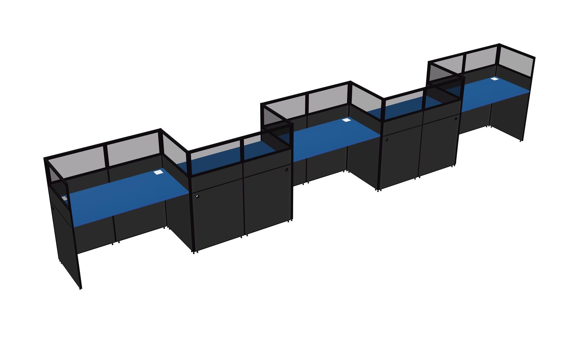 Prism Blue Rectangular Cubicle Workstations For 5 - Zigzag Formation