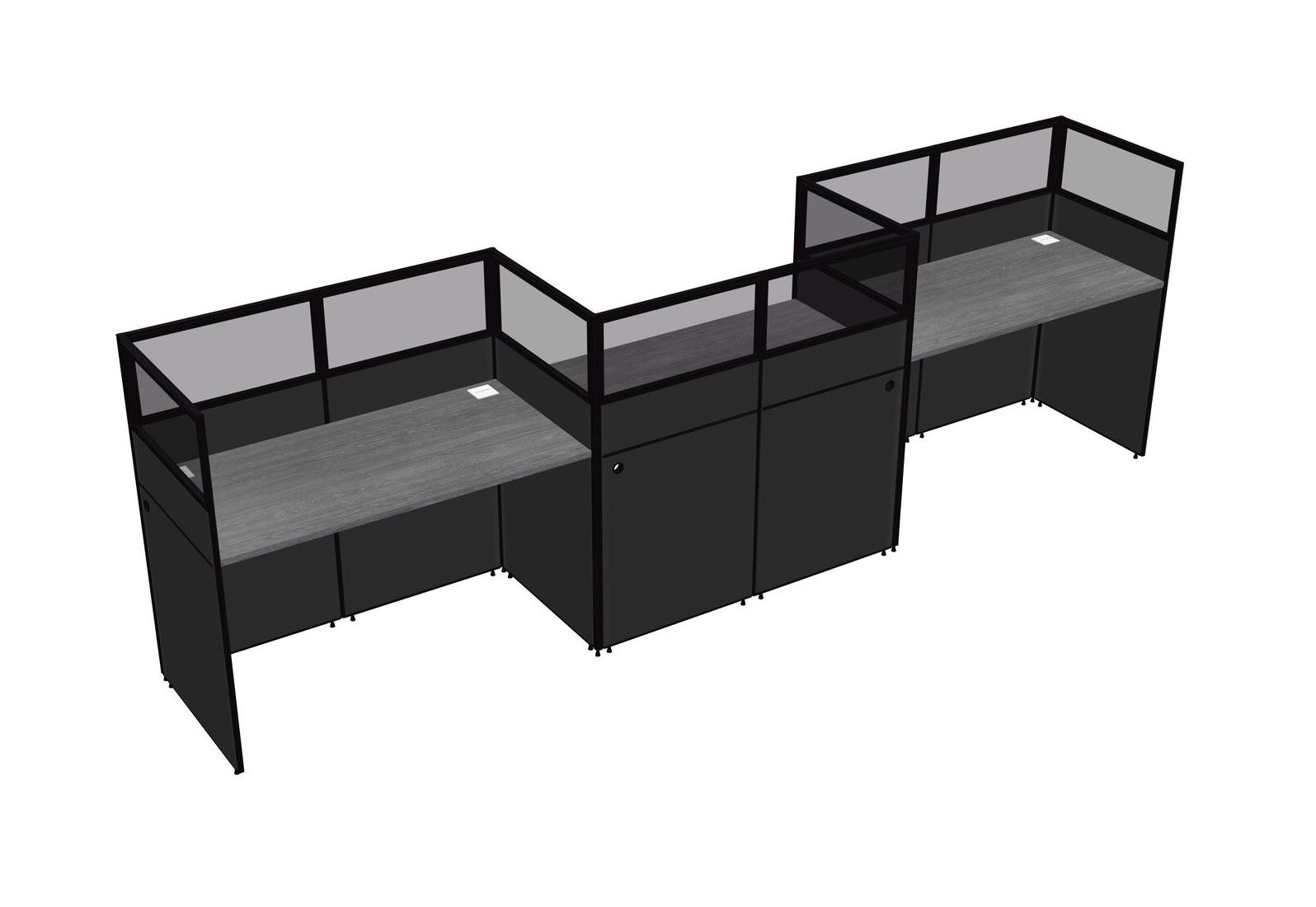 Grey Rectangular Cubicle Workstations For 3 - Zigzag Formation