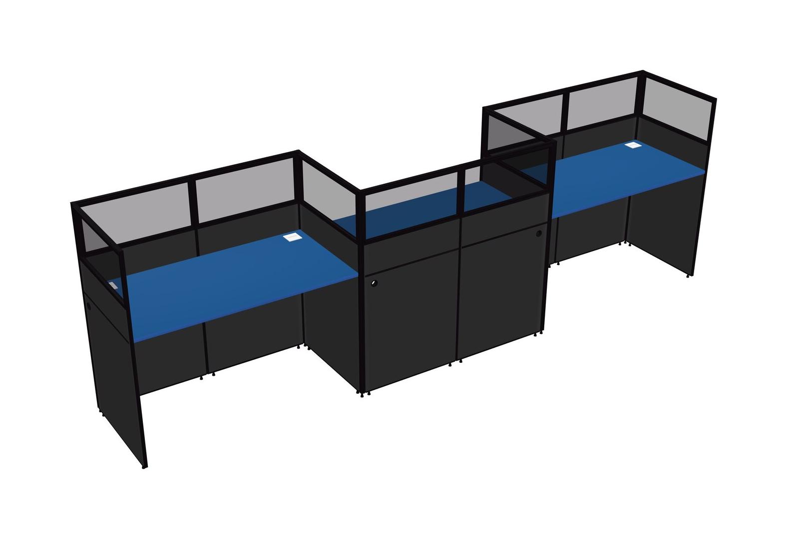 Prism Blue Rectangular Cubicle Workstations For 3 - Zigzag Formation