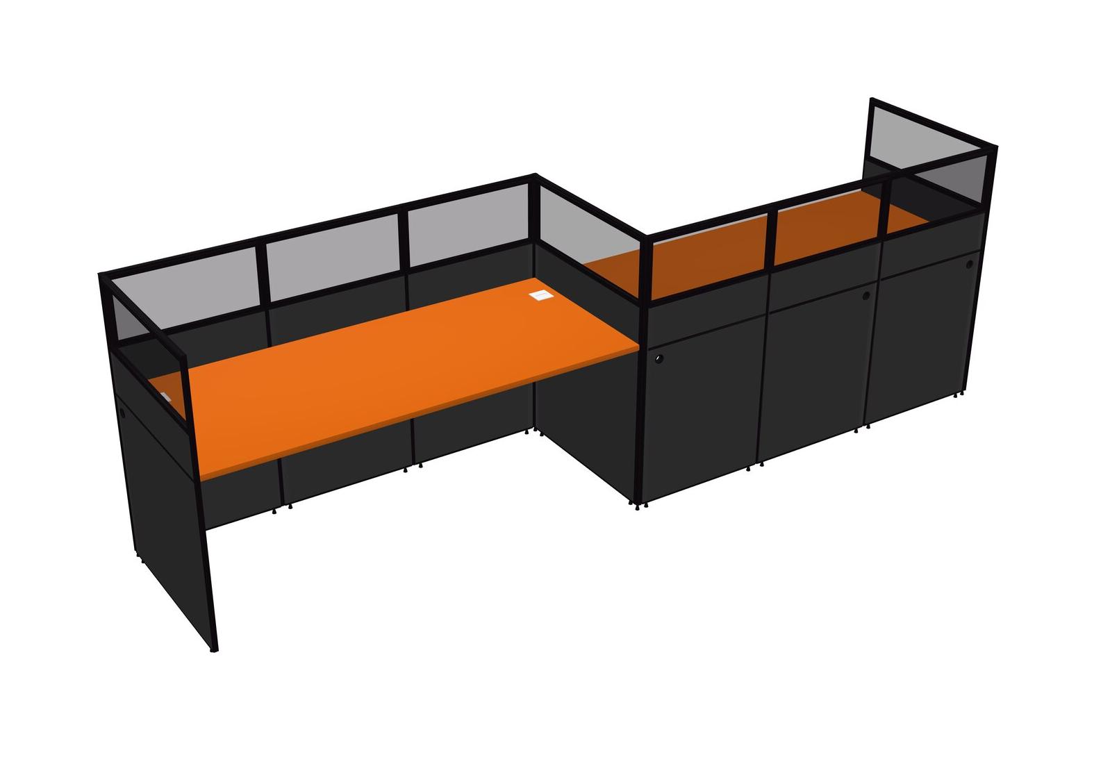 Orange Rectangular Cubicle Workstations For 2 - Zigzag Formation