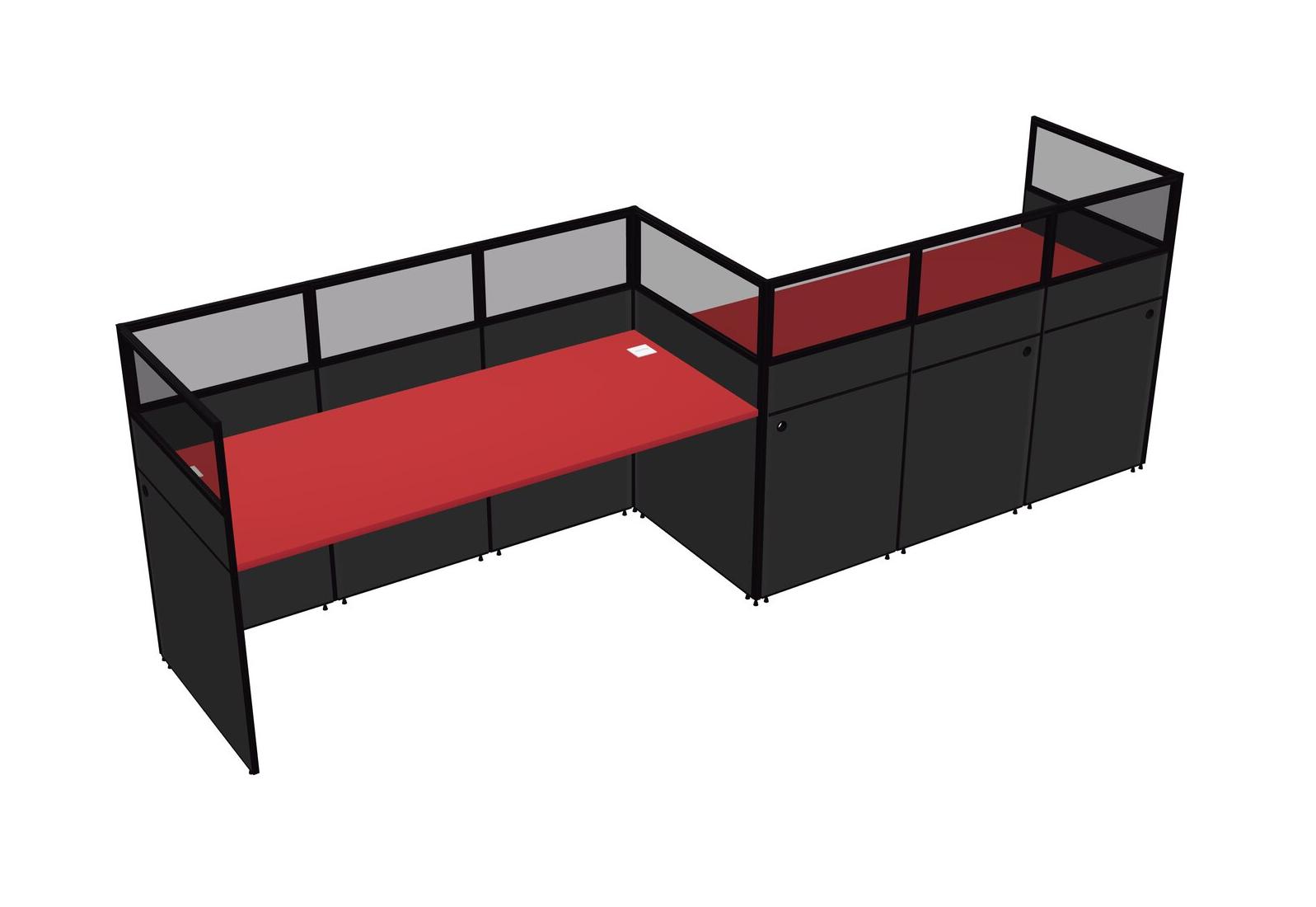 Prism Red Rectangular Cubicle Workstations For 2 - Zigzag Formation