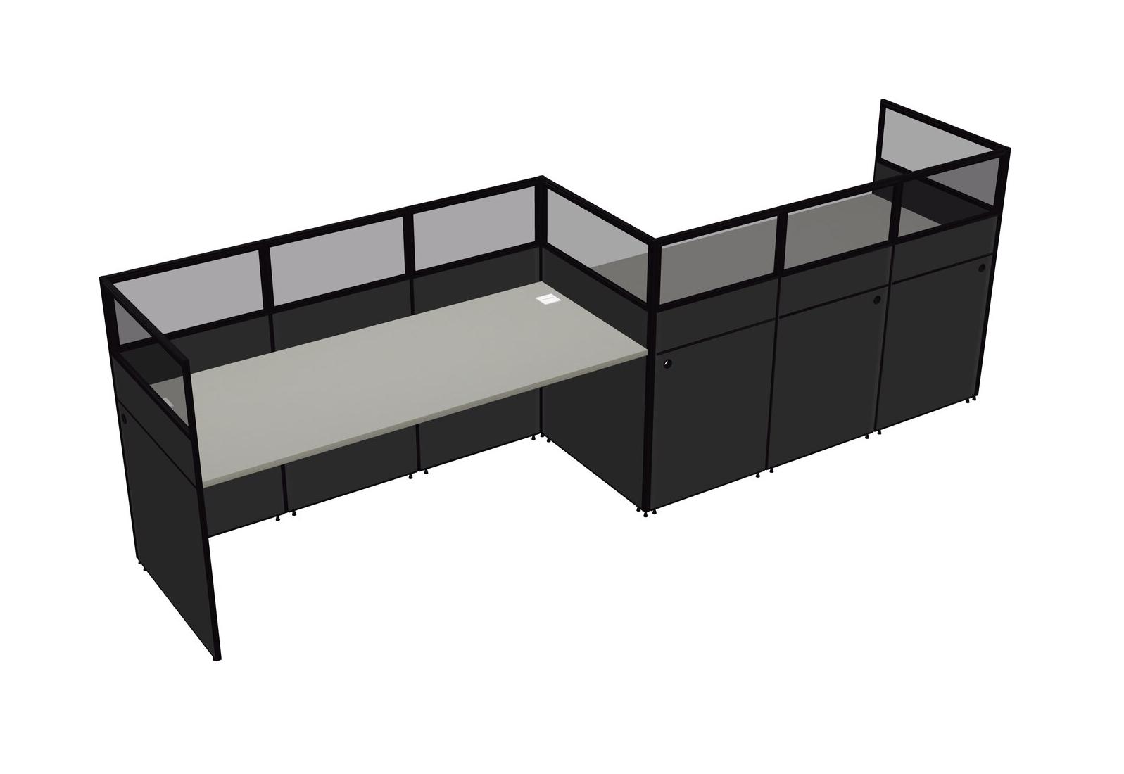 Grey Shadows Rectangular Cubicle Workstations For 2 - Zigzag Formation