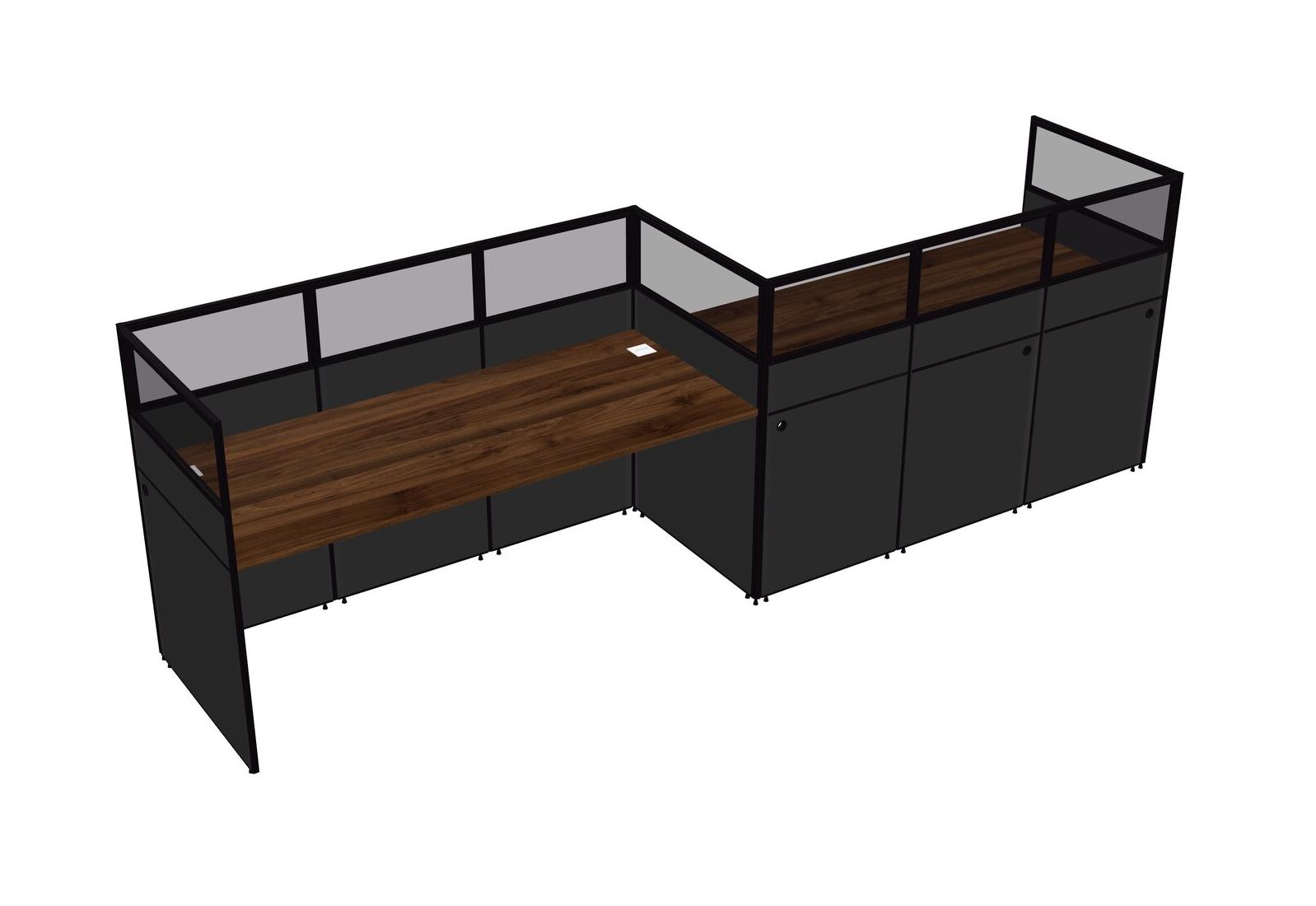 Columbia Walnut Rectangular Cubicle Workstations For 2 - Zigzag Formation