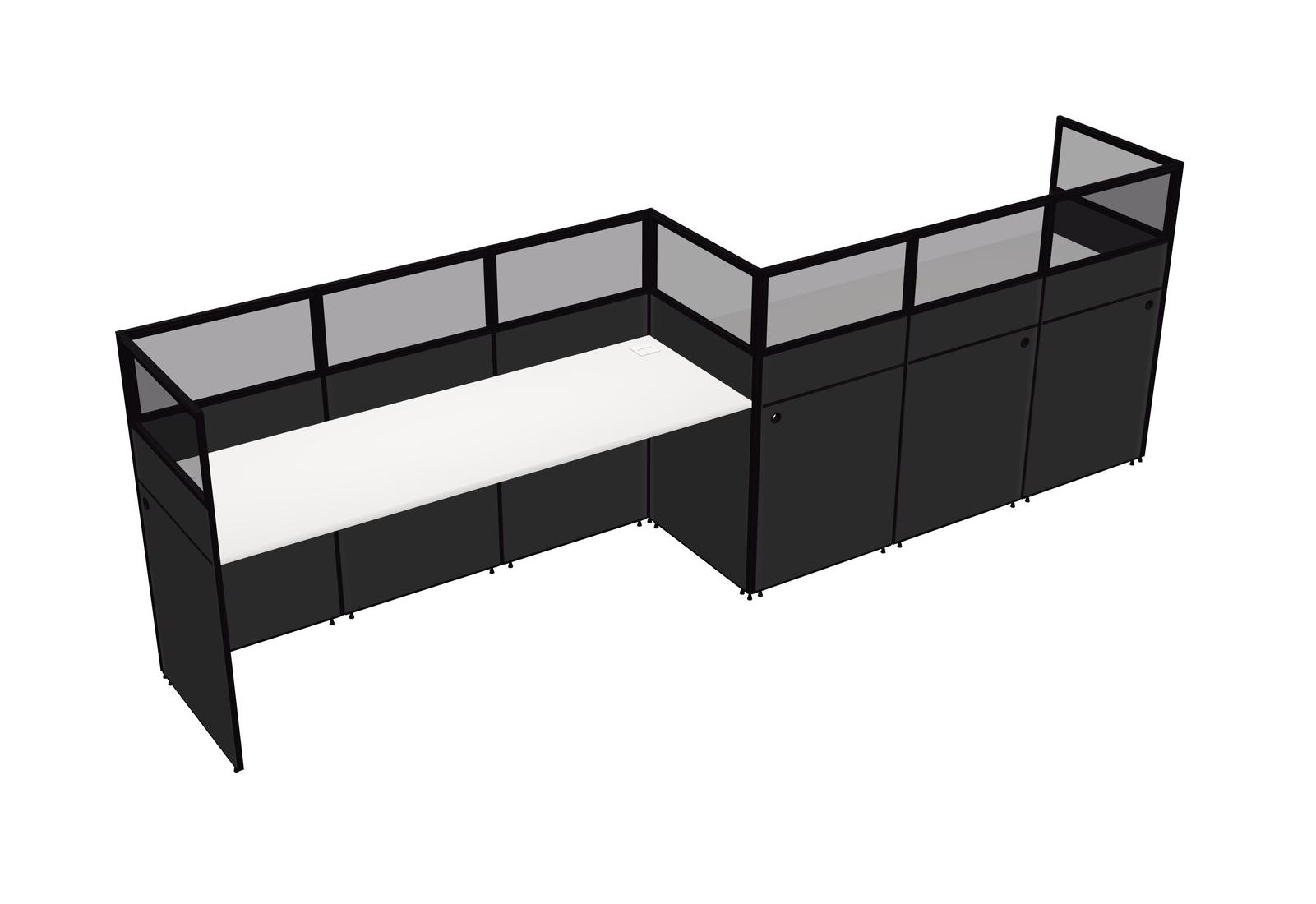 White Rectangular Cubicle Workstations For 2 - Zigzag Formation