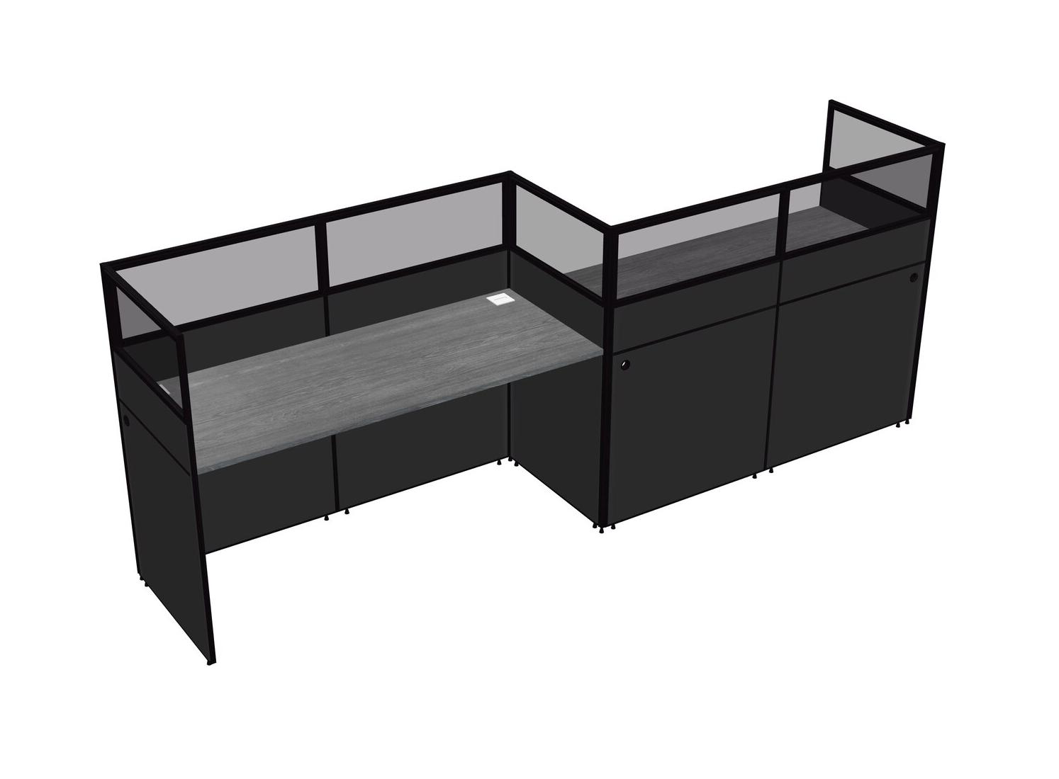 Grey Rectangular Cubicle Workstations For 2 - Zigzag Formation