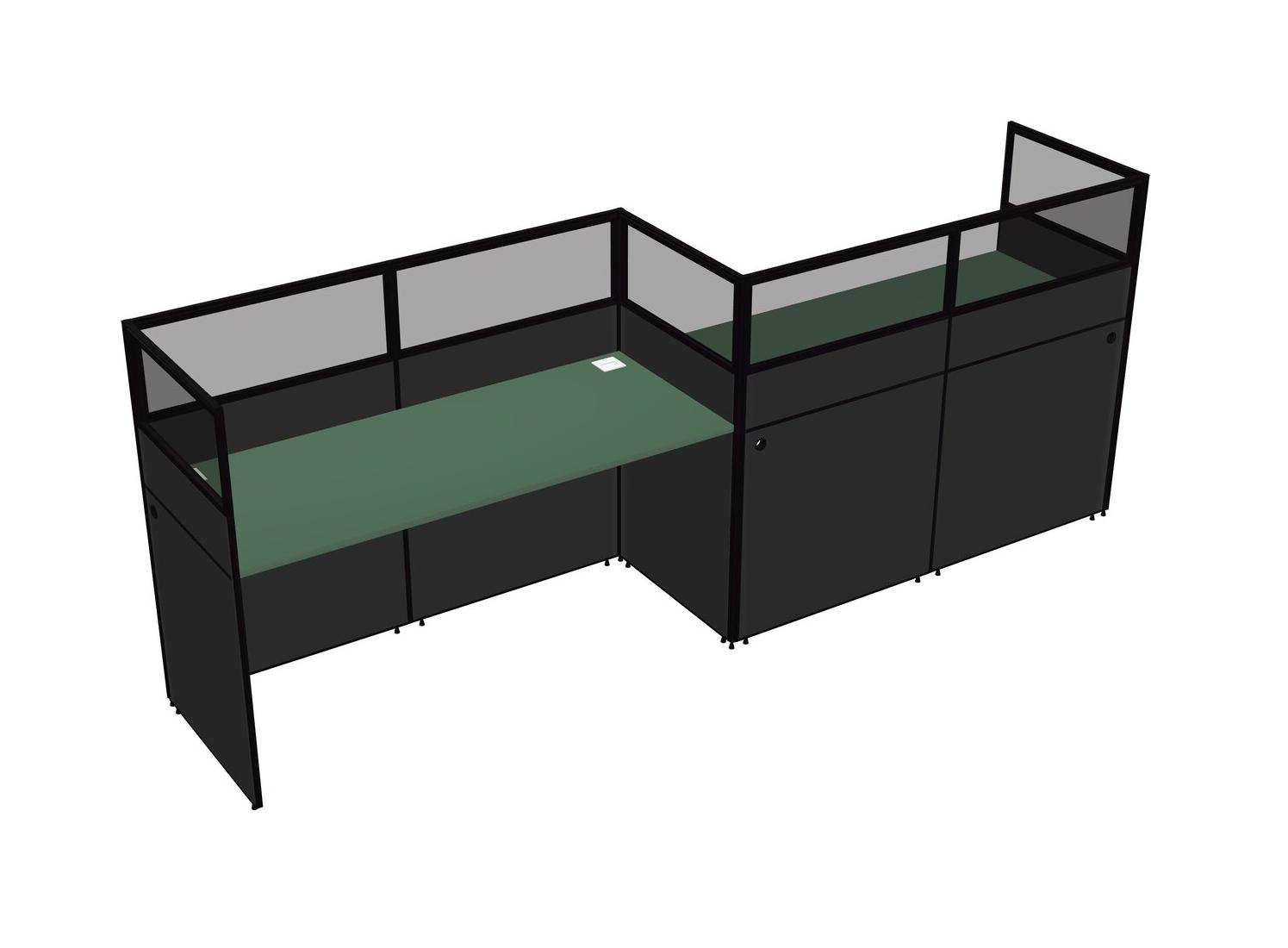 Green Rectangular Cubicle Workstations For 2 - Zigzag Formation