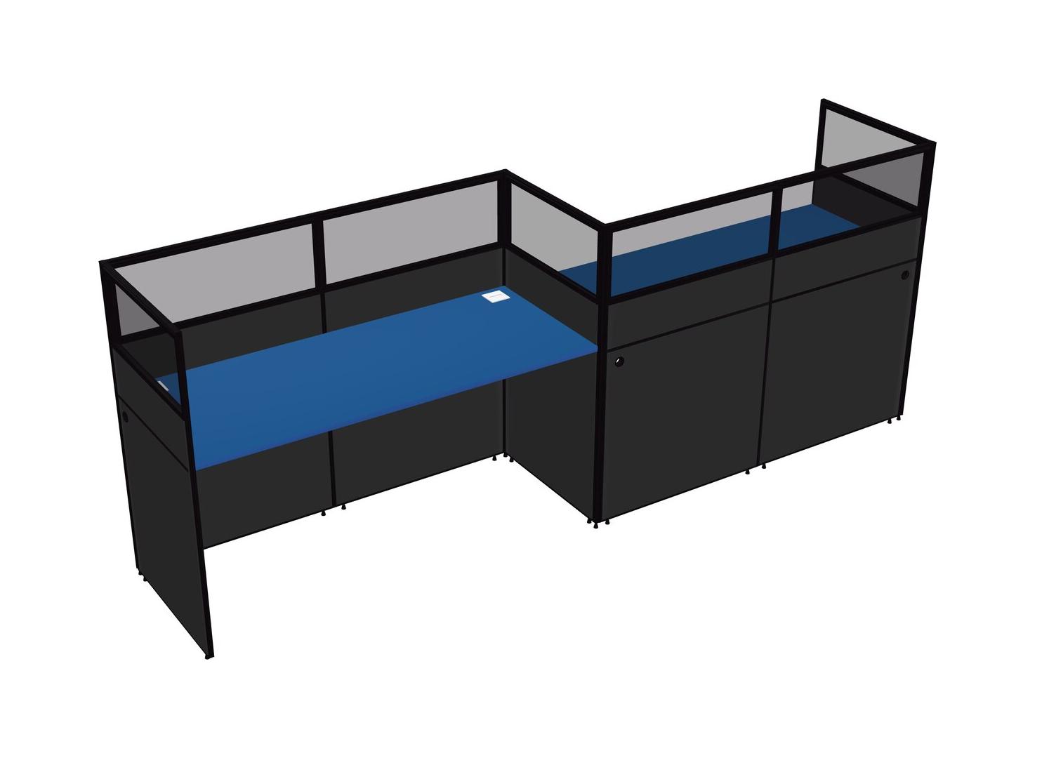 Prism Blue Rectangular Cubicle Workstations For 2 - Zigzag Formation