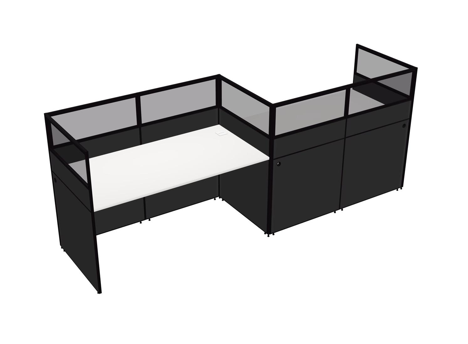 White Rectangular Cubicle Workstations For 2 - Zigzag Formation
