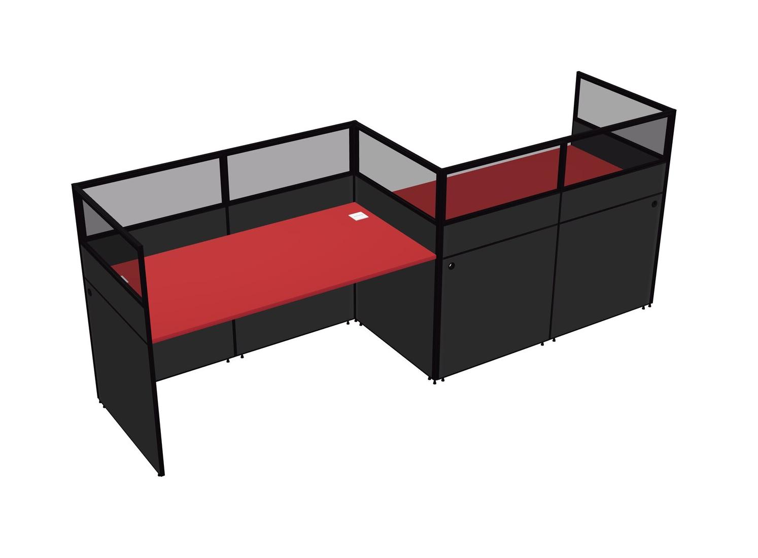 Prism Red Rectangular Cubicle Workstations For 2 - Zigzag Formation