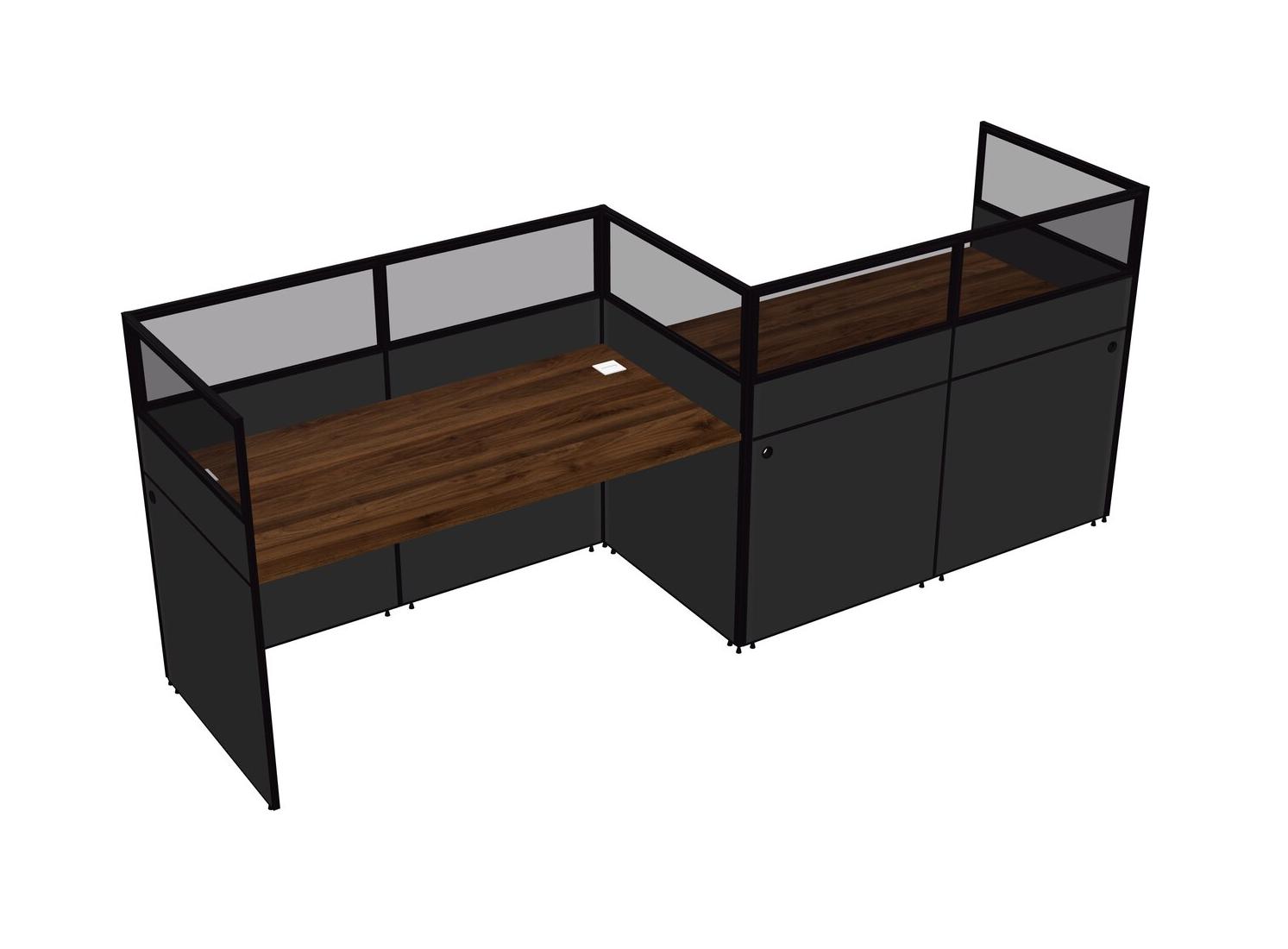 Columbia Walnut Rectangular Cubicle Workstations For 2 - Zigzag Formation