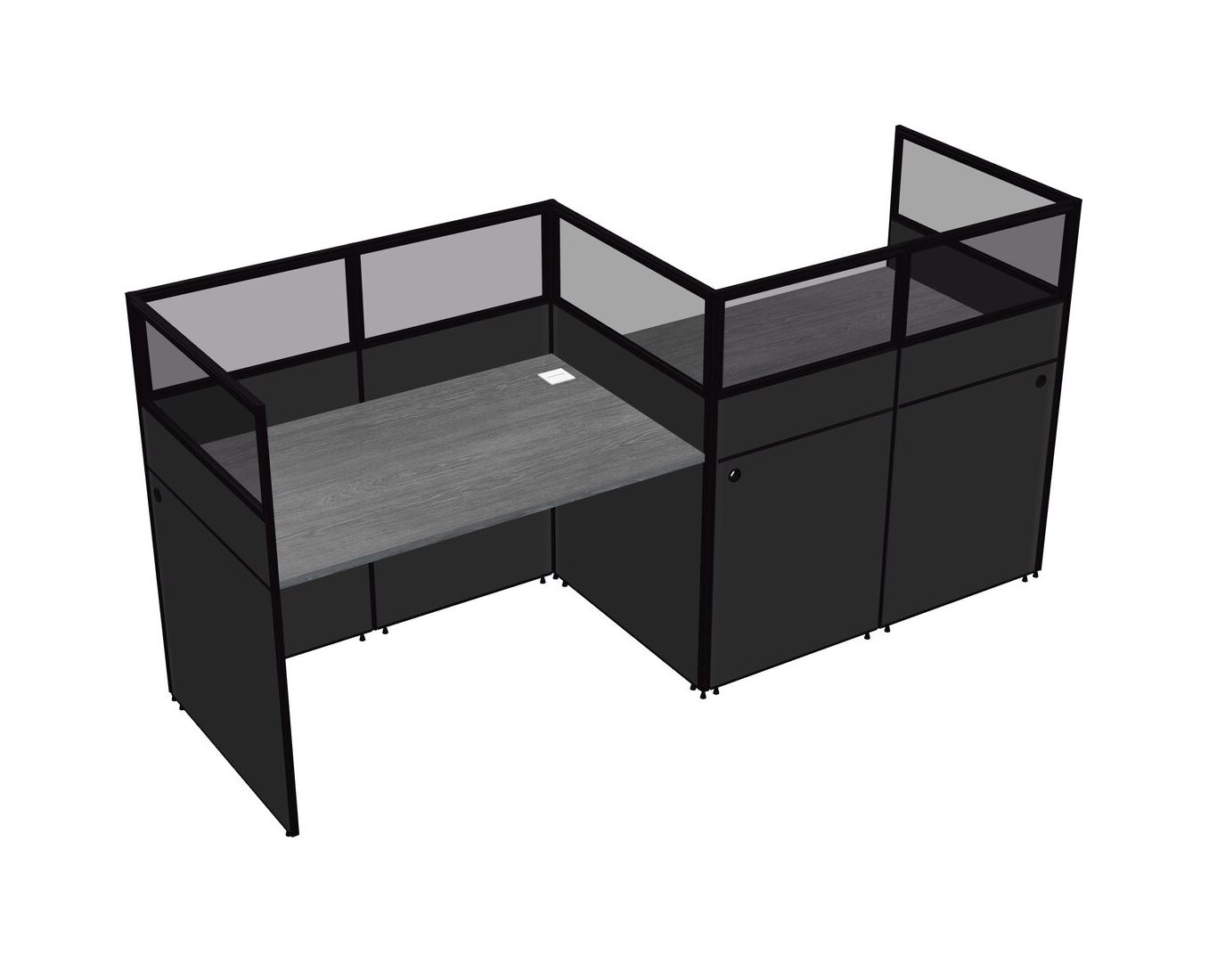 Grey Rectangular Cubicle Workstations For 2 - Zigzag Formation