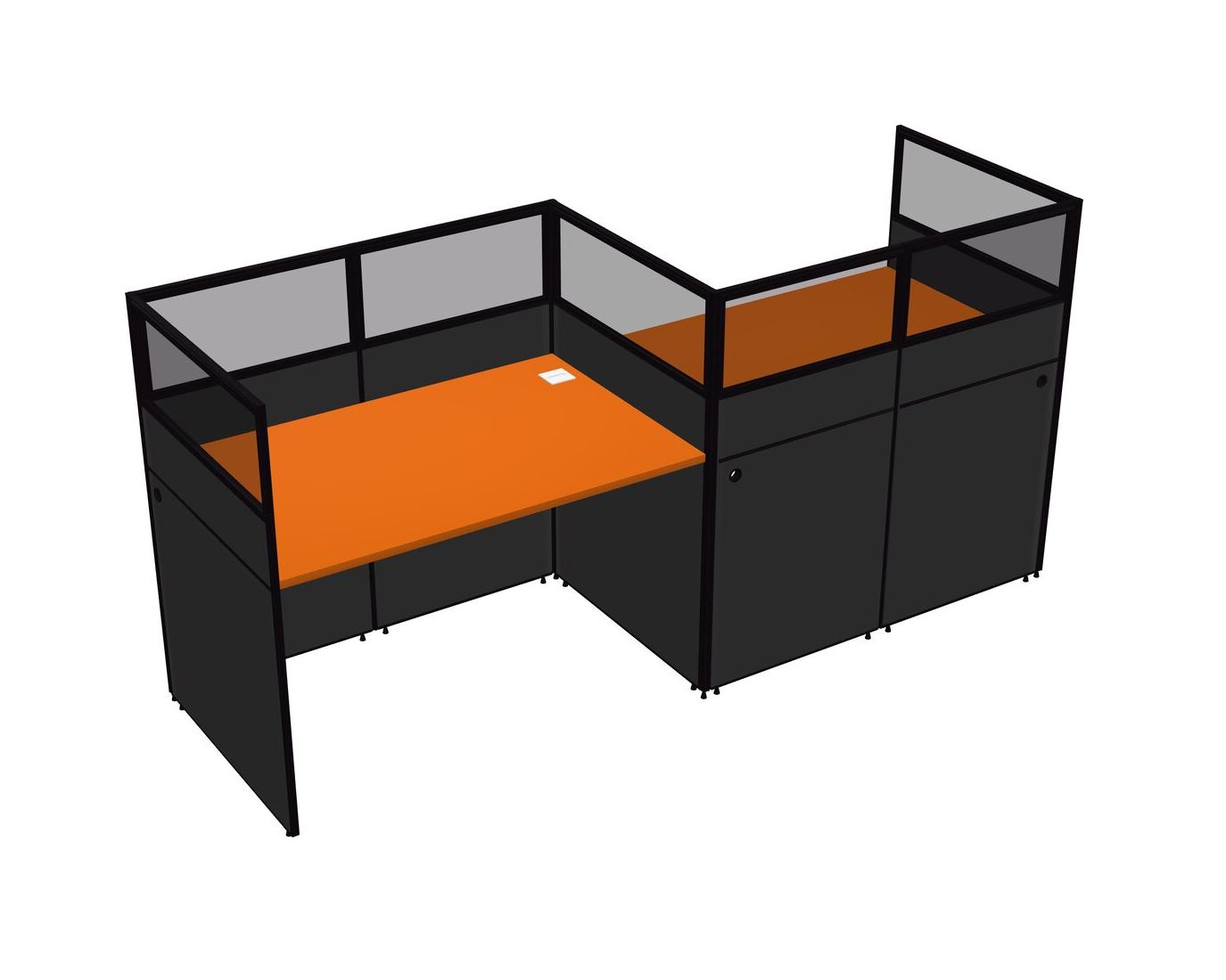 Orange Rectangular Cubicle Workstations For 2 - Zigzag Formation