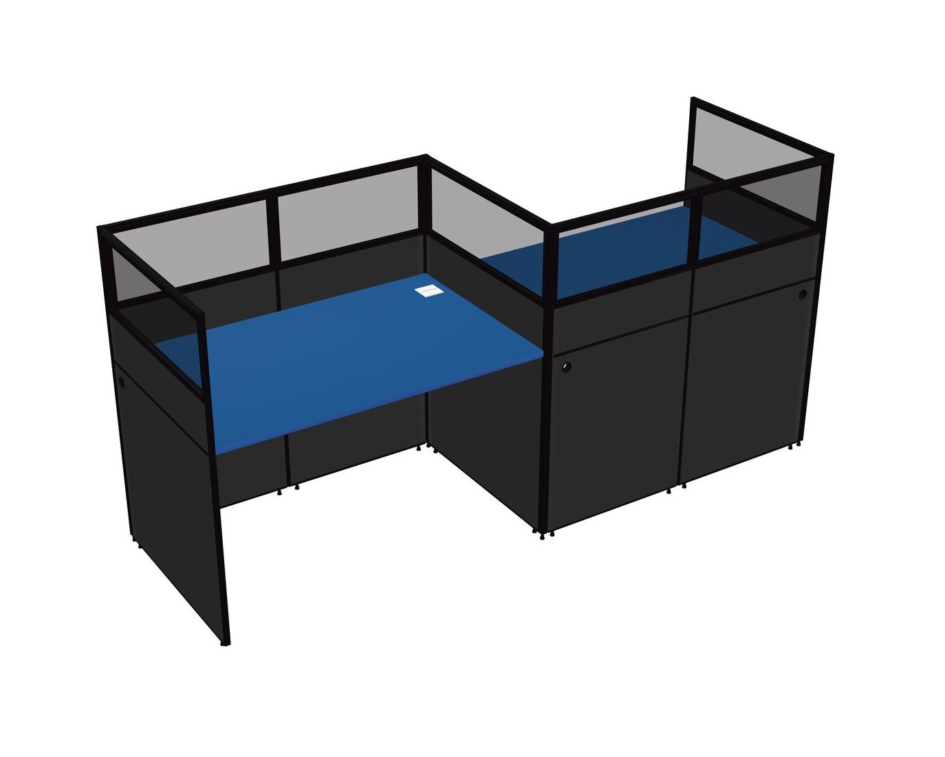 Prism Blue Rectangular Cubicle Workstations For 2 - Zigzag Formation