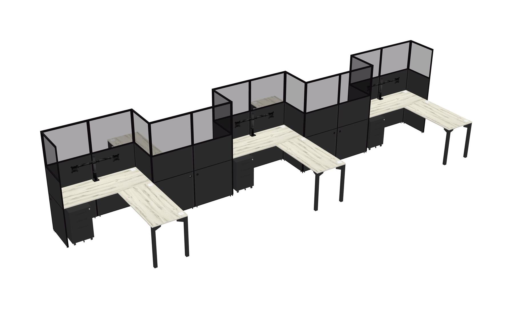 Heinne Holz L-shape Cubicle Workstations For 5 - Zigzag Formation + Black Metal Mobile Drawers + Panel Return
