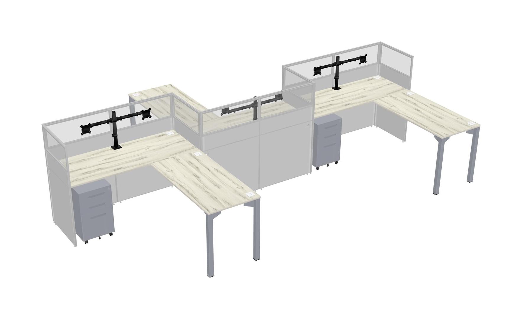 Heinne Holz L-shape Cubicle Workstations For 3 - Zigzag Formation + Grey Metal Mobile Drawers + Panel Return
