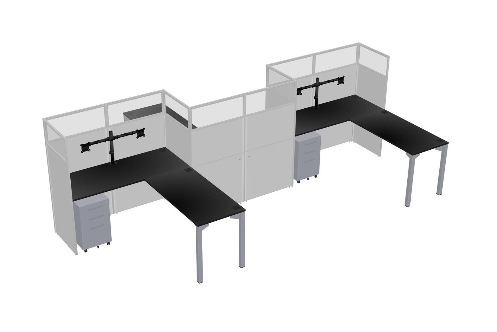Black L-shape Cubicle Workstations For 3 - Zigzag Formation + Grey Metal Mobile Drawers + Panel Return