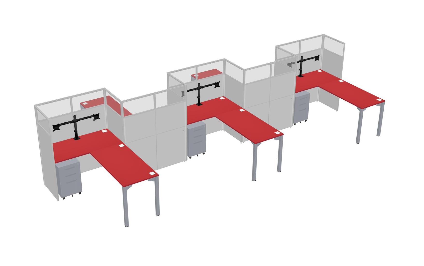 Prism Red L-shape Cubicle Workstations For 5 - Zigzag Formation + Grey Metal Mobile Drawers + Panel Return