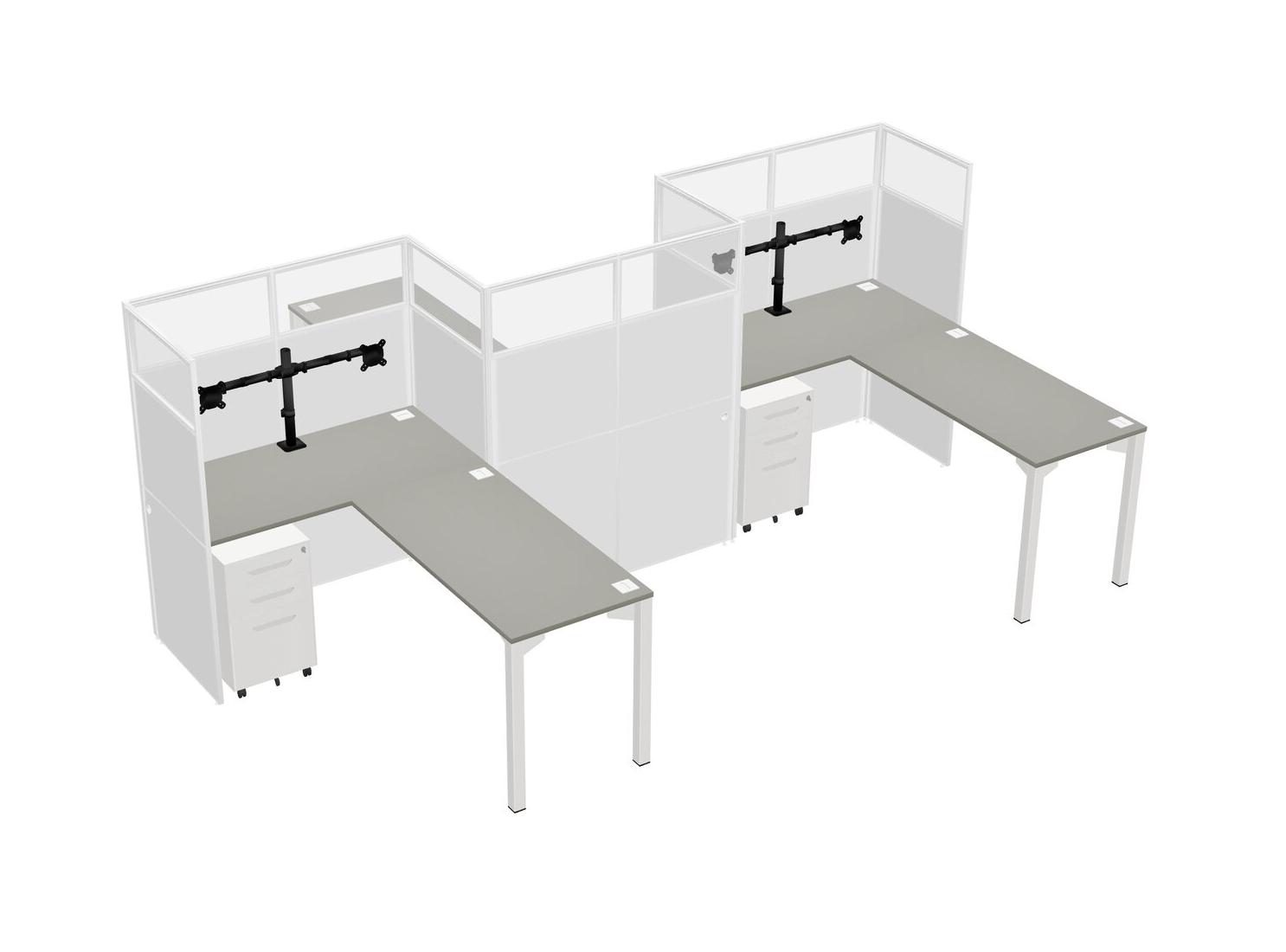 Grey Shadows L-shape Cubicle Workstations For 3 - Zigzag Formation + White Metal Mobile Drawers + Panel Return