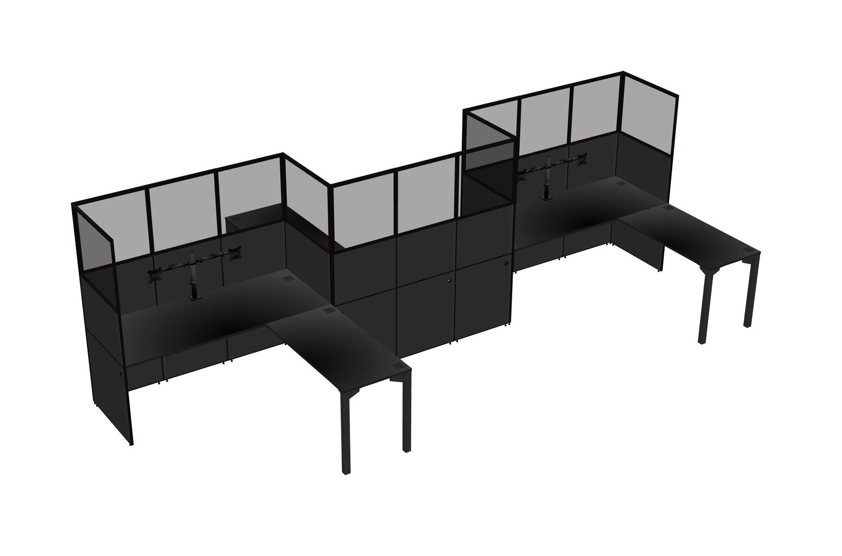 Black L-shape Cubicle Workstations For 3 - Zigzag Formation + Panel Return