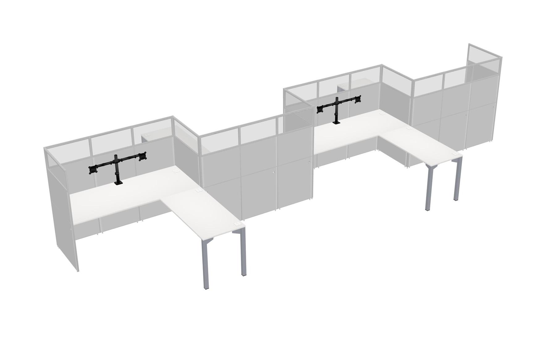White L-shape Cubicle Workstations For 4 - Zigzag Formation + Panel Return