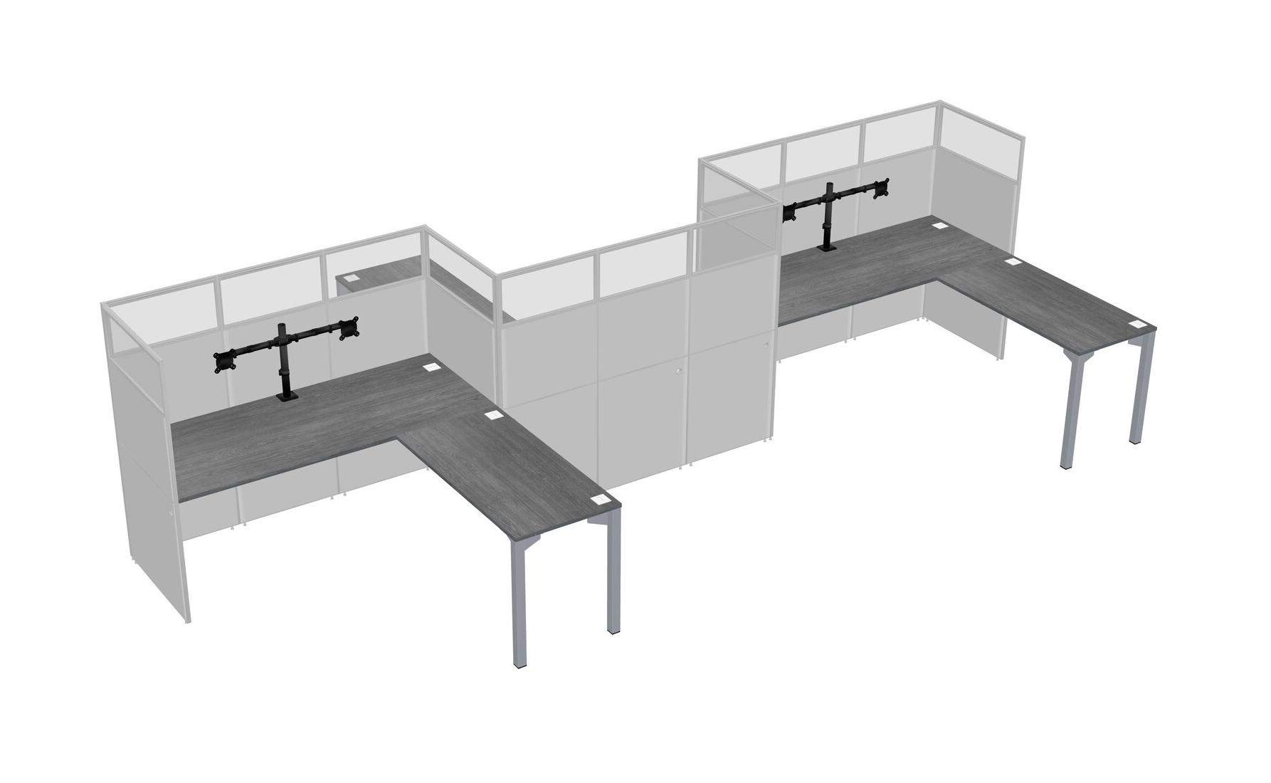 Grey L-shape Cubicle Workstations For 3 - Zigzag Formation + Panel Return