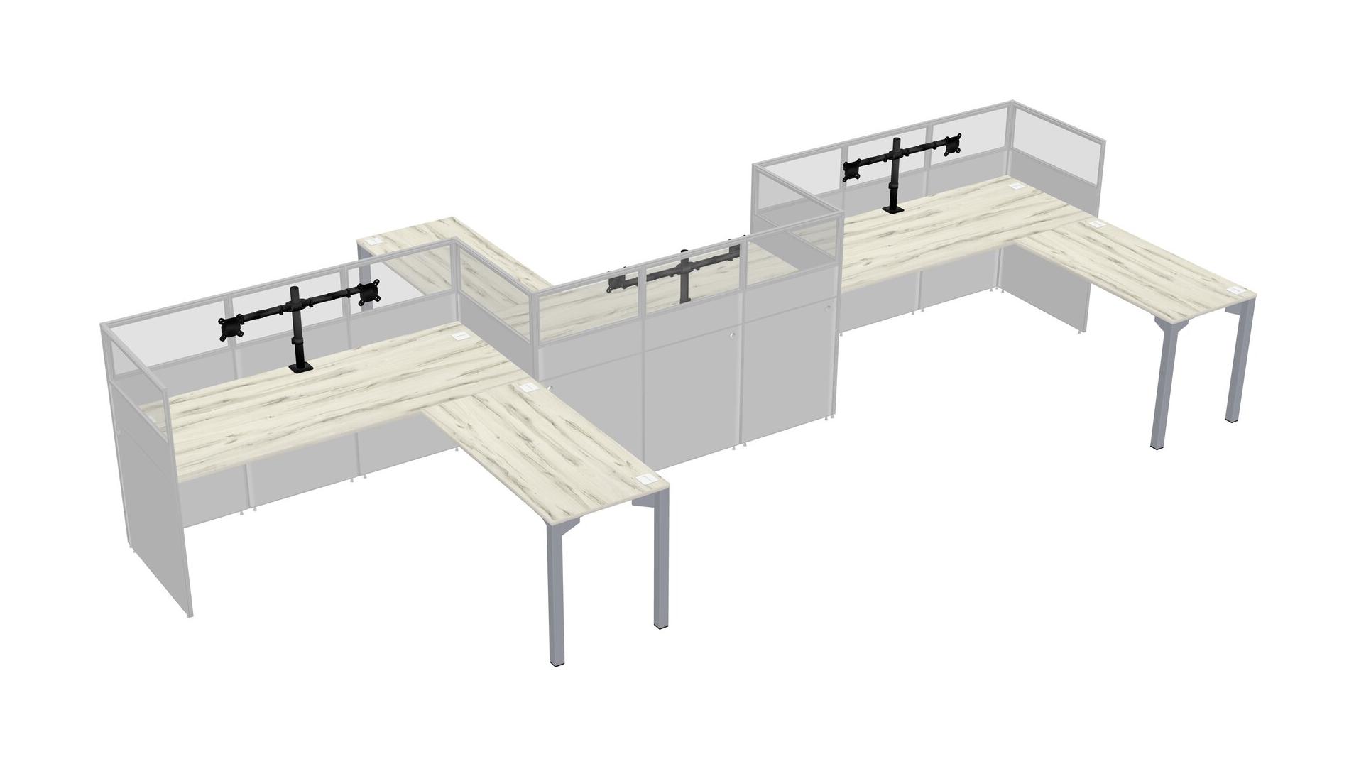 Heinne Holz L-shape Cubicle Workstations For 3 - Zigzag Formation + Panel Return