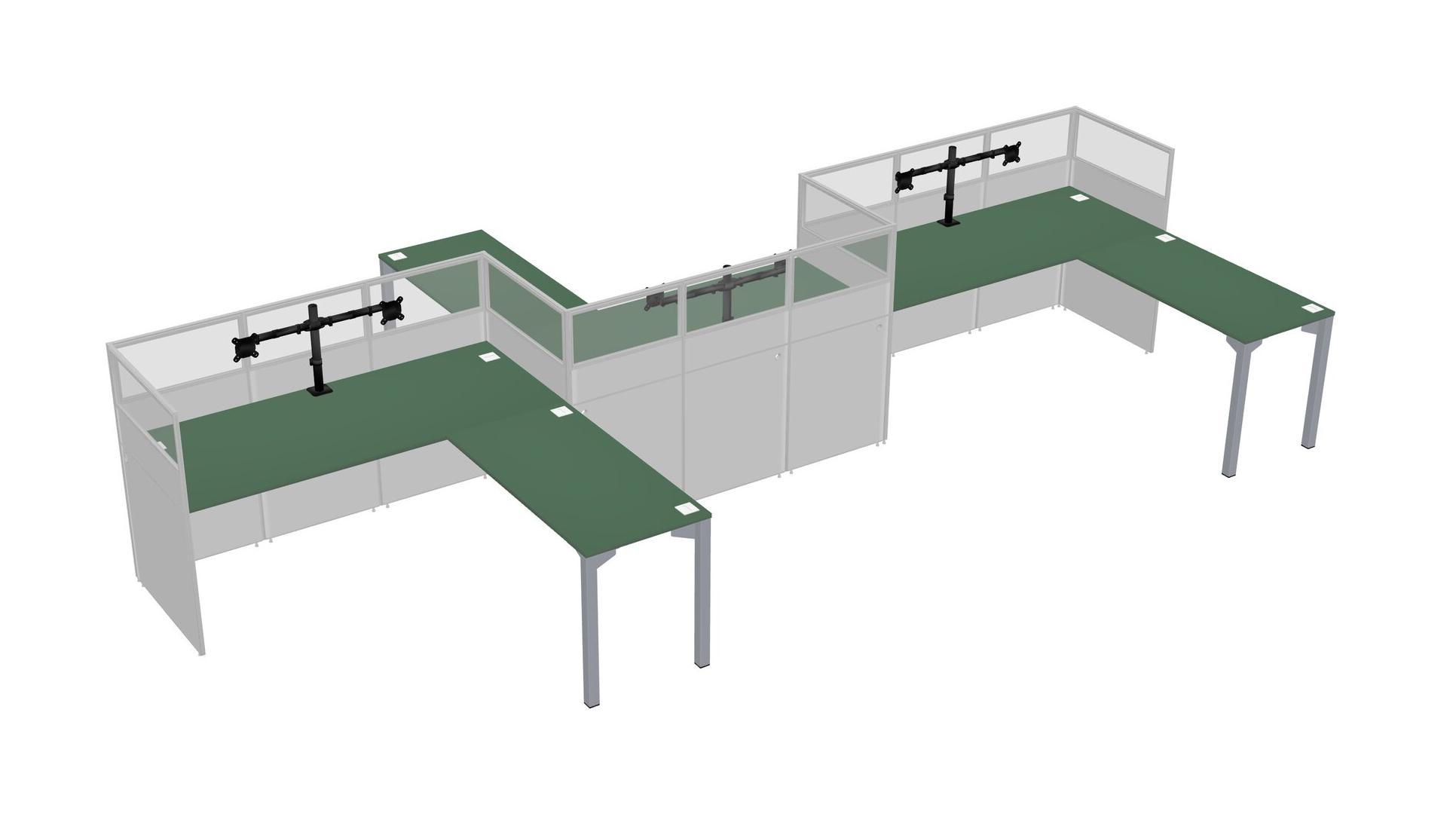 Green L-shape Cubicle Workstations For 3 - Zigzag Formation + Panel Return