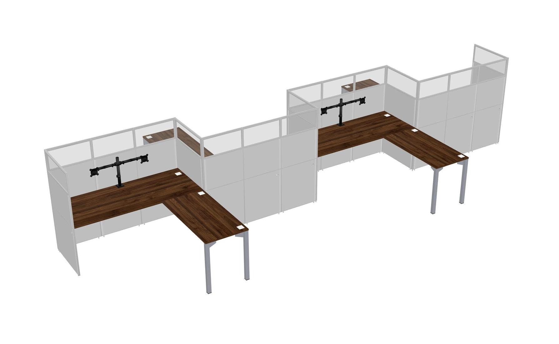 Columbia Walnut L-shape Cubicle Workstations For 4 - Zigzag Formation + Panel Return