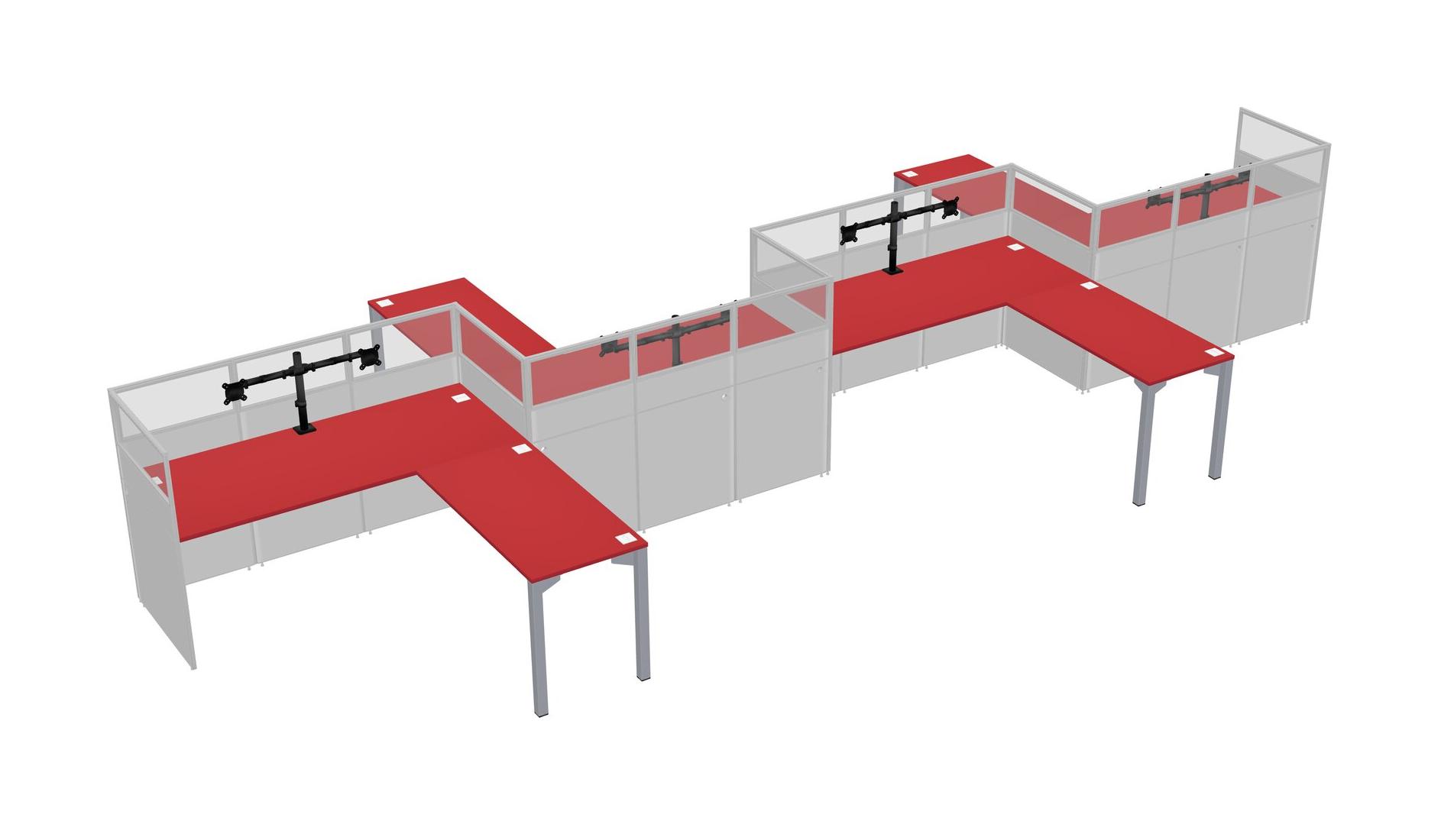 Prism Red L-shape Cubicle Workstations For 4 - Zigzag Formation + Panel Return