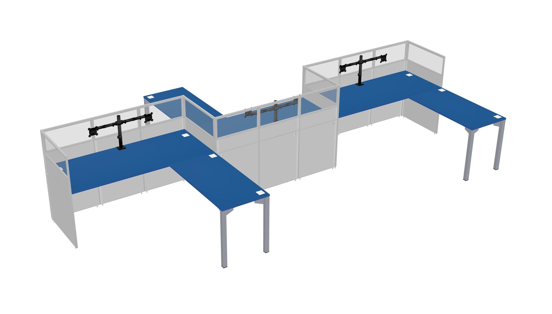 Prism Blue L-shape Cubicle Workstations For 3 - Zigzag Formation + Panel Return