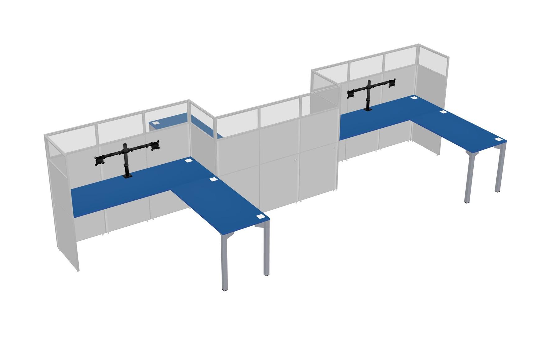Prism Blue L-shape Cubicle Workstations For 3 - Zigzag Formation + Panel Return