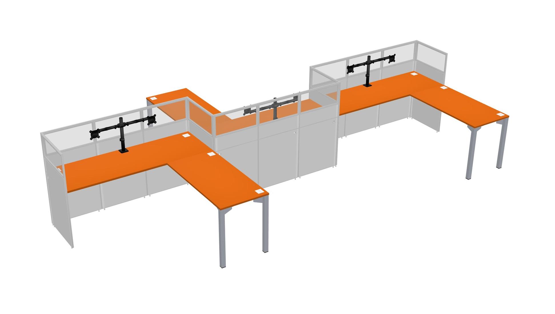 Orange L-shape Cubicle Workstations For 3 - Zigzag Formation + Panel Return