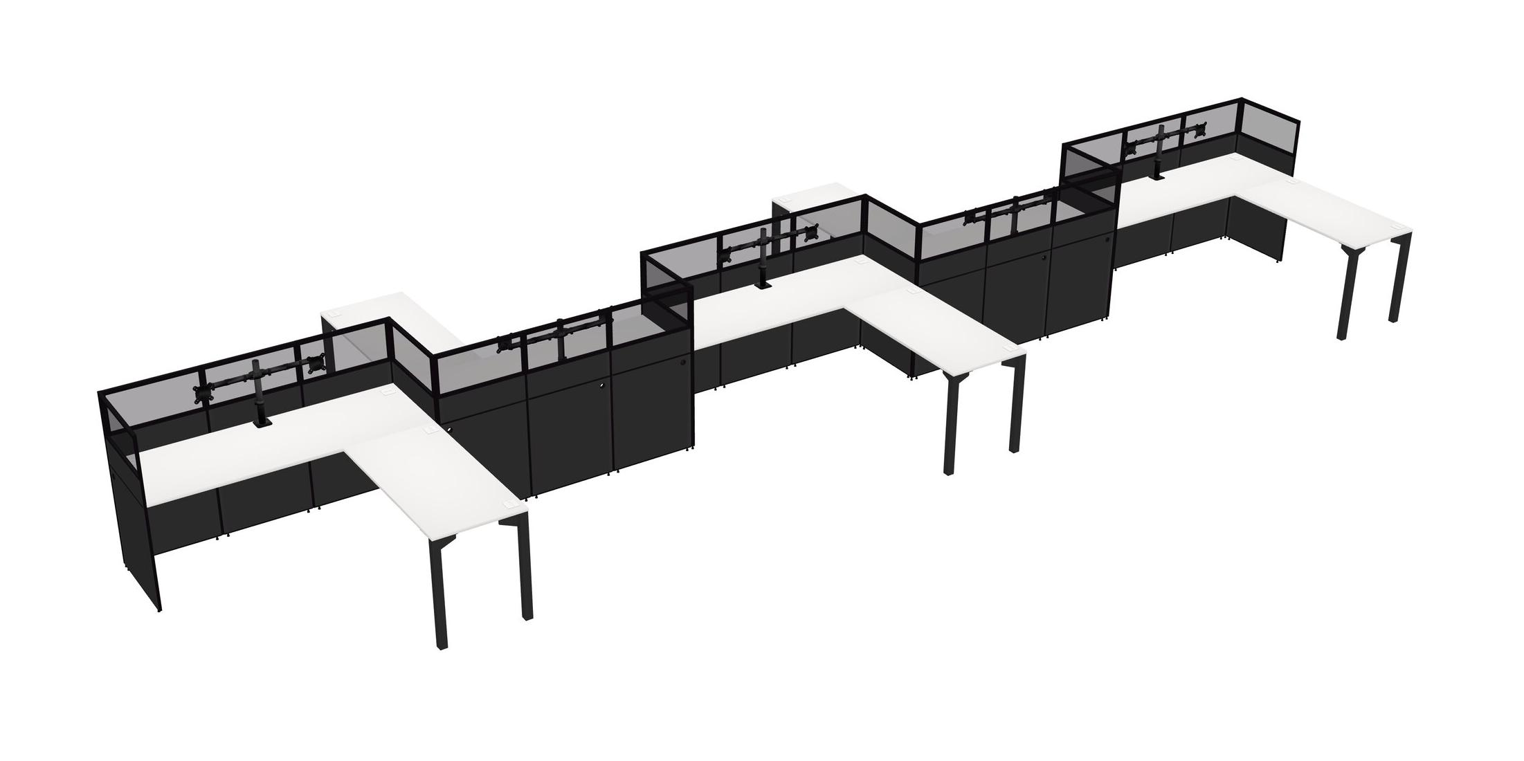 White L-shape Cubicle Workstations For 5 - Zigzag Formation + Panel Return