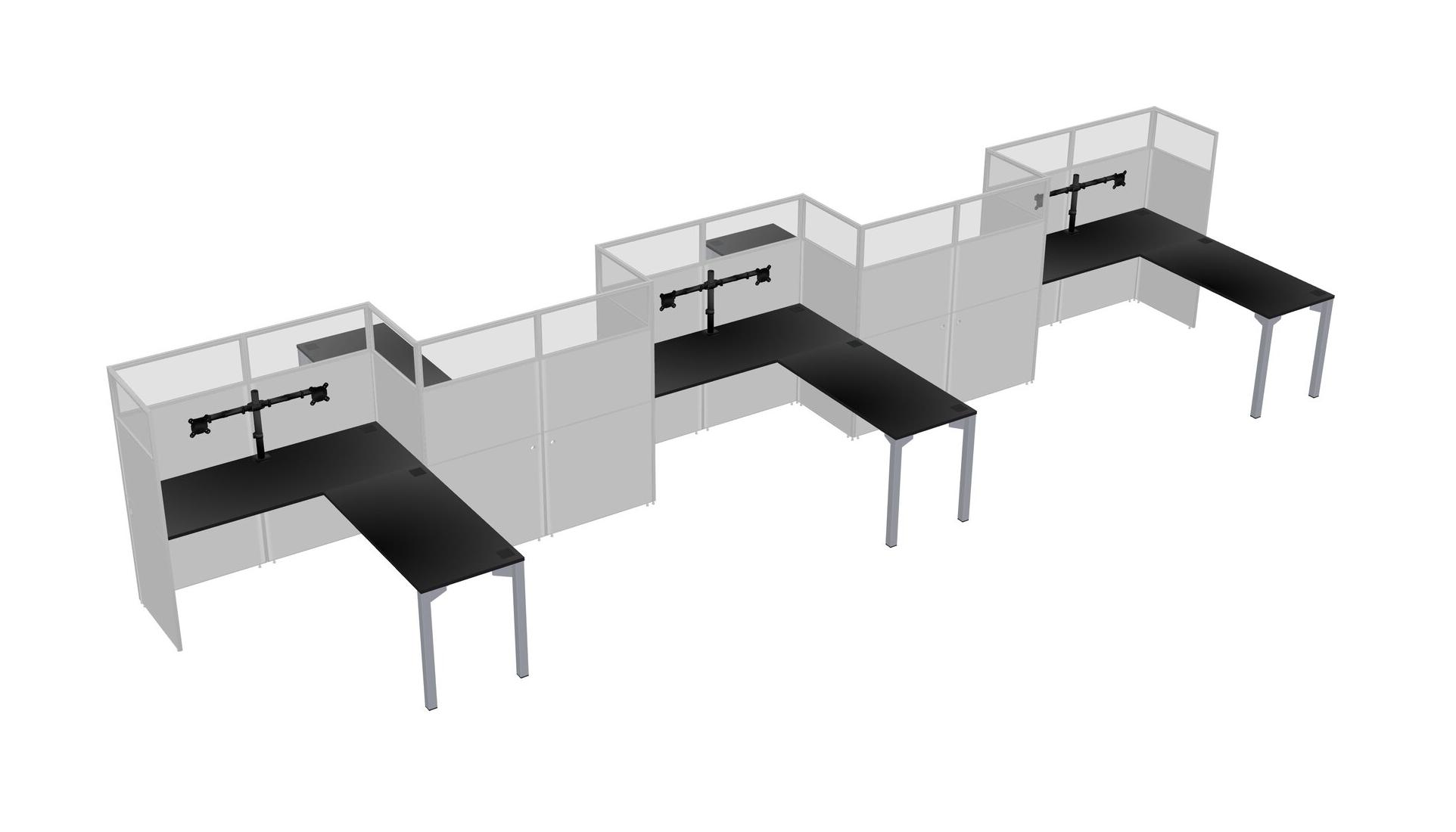 Black L-shape Cubicle Workstations For 5 - Zigzag Formation + Panel Return
