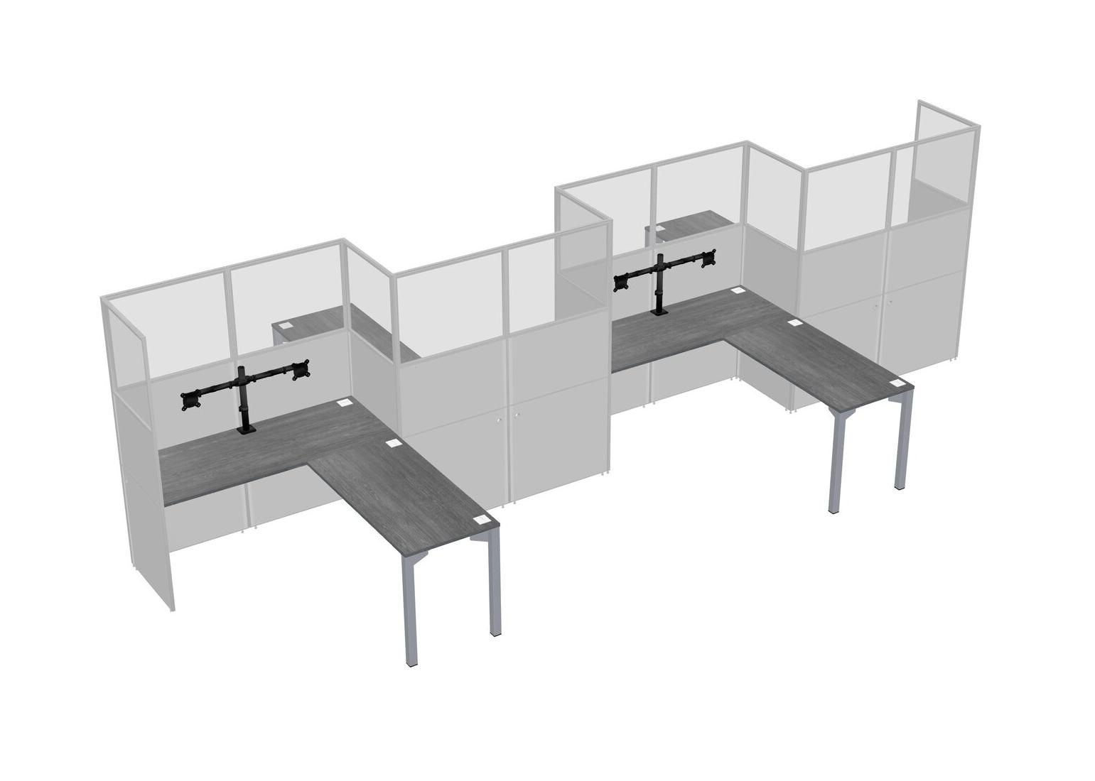 Grey L-shape Cubicle Workstations For 4 - Zigzag Formation + Panel Return