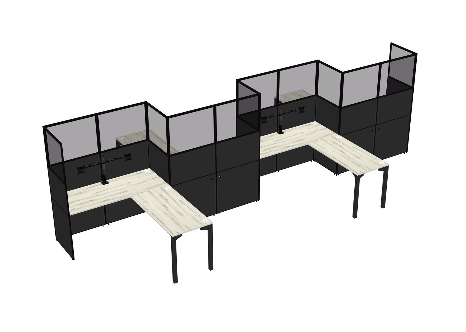 Heinne Holz L-shape Cubicle Workstations For 4 - Zigzag Formation + Panel Return