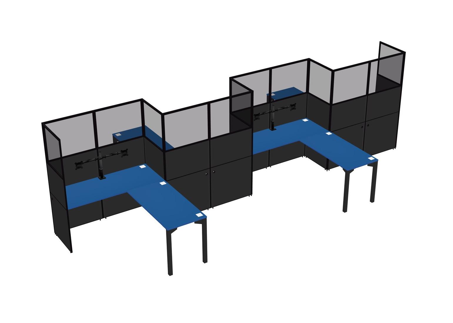 Prism Blue L-shape Cubicle Workstations For 4 - Zigzag Formation + Panel Return
