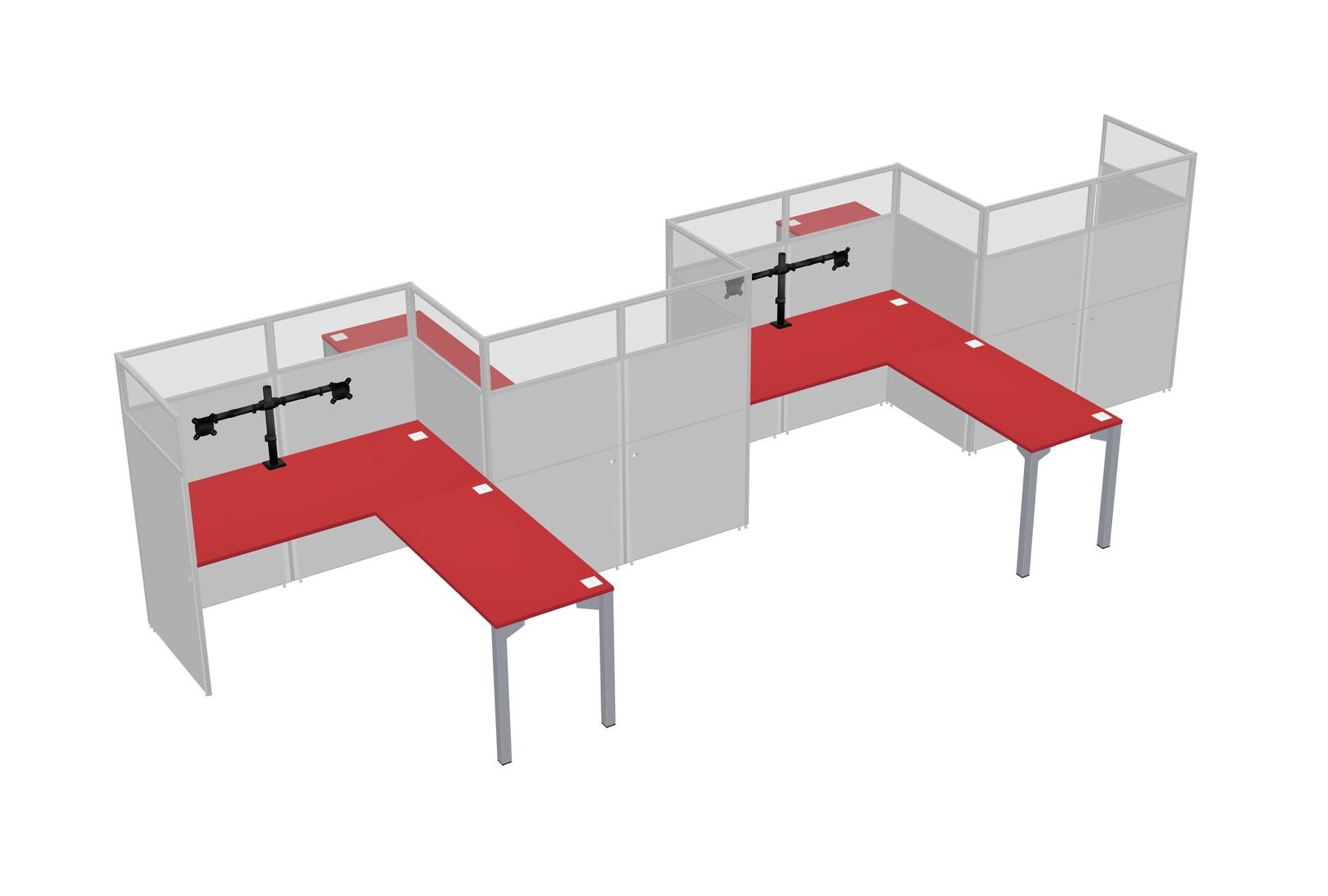 Prism Red L-shape Cubicle Workstations For 4 - Zigzag Formation + Panel Return