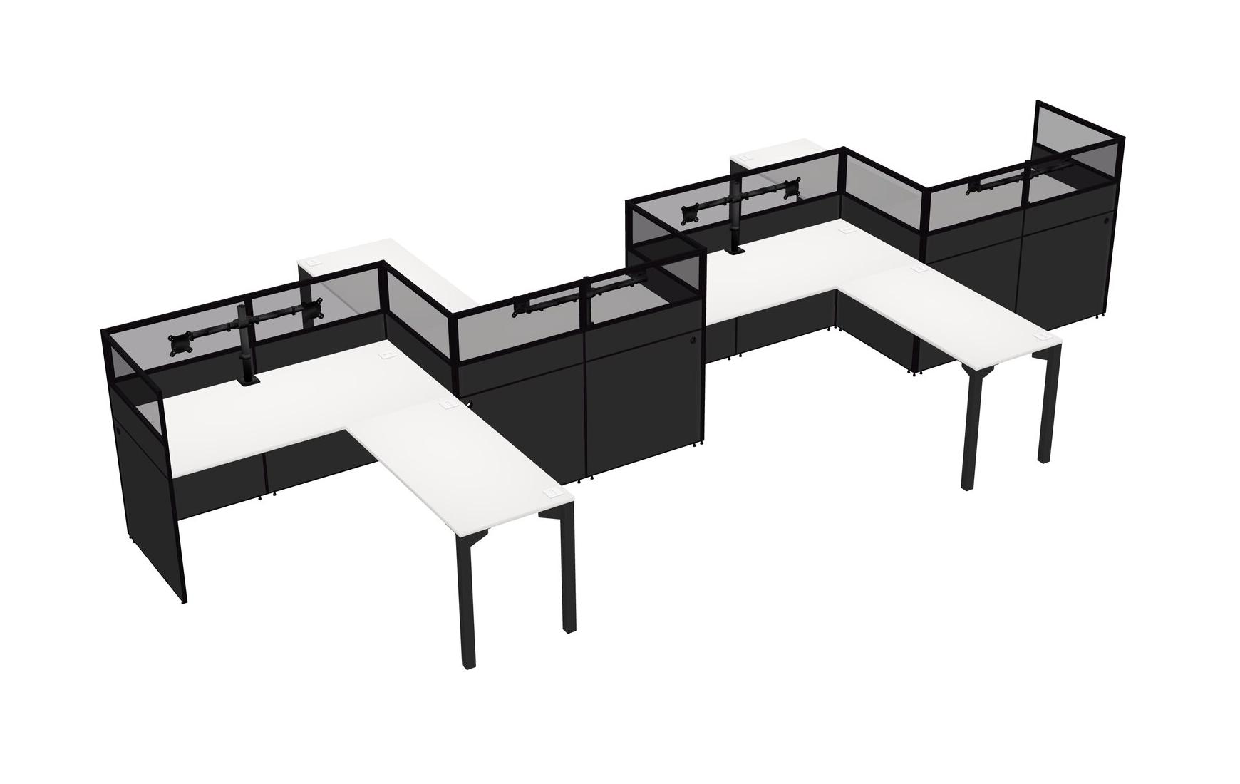 White L-shape Cubicle Workstations For 4 - Zigzag Formation + Panel Return