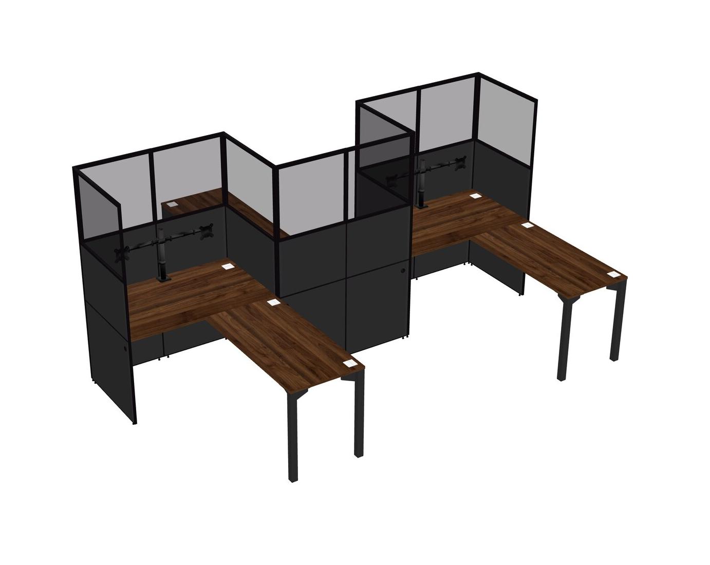 Columbia Walnut L-shape Cubicle Workstations For 3 - Zigzag Formation + Panel Return