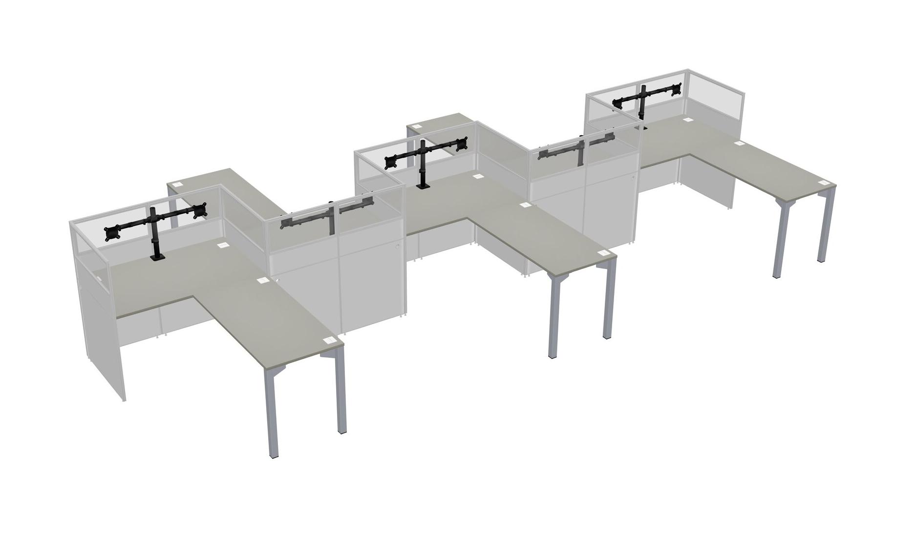 Grey Shadows L-shape Cubicle Workstations For 5 - Zigzag Formation + Panel Return