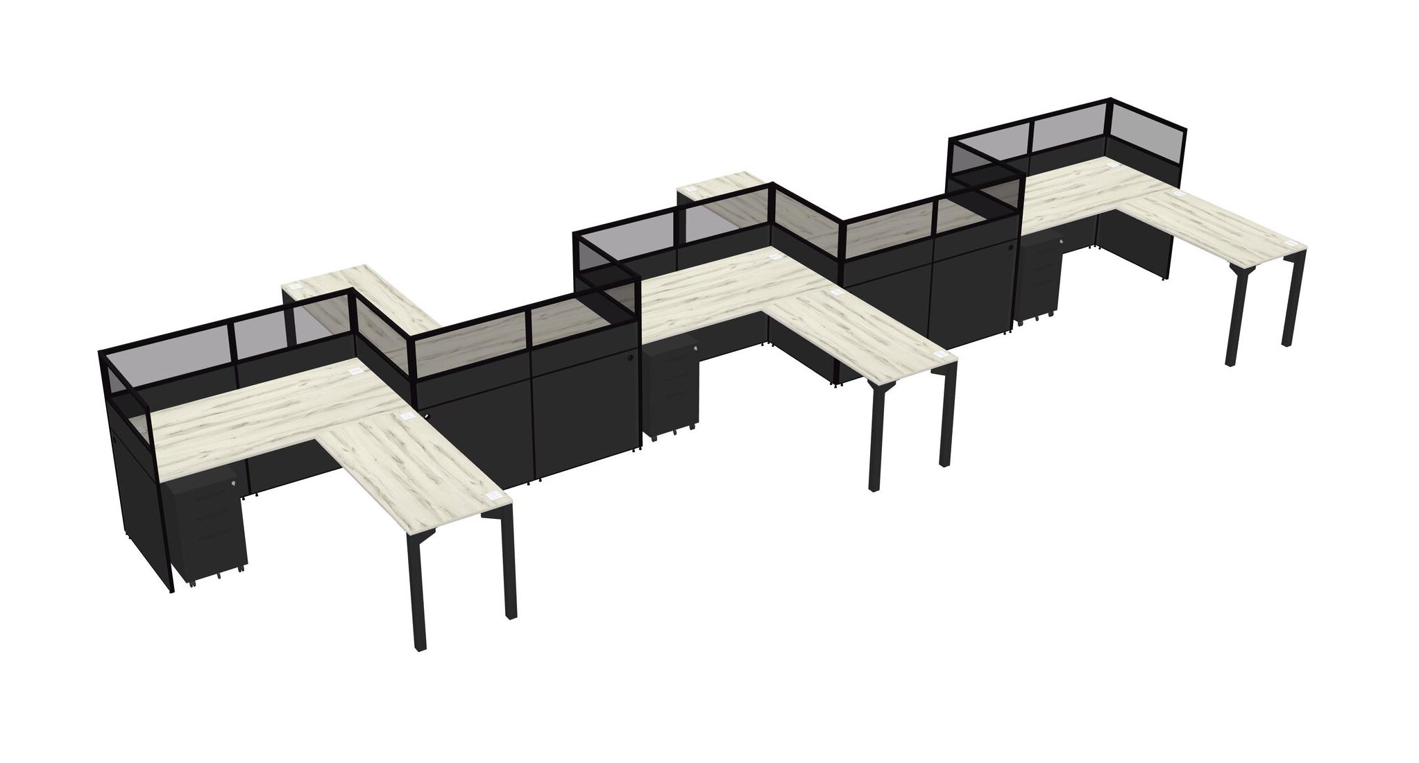 Heinne Holz L-shape Cubicle Workstations For 5 - Zigzag Formation + Black Metal Mobile Drawers + Panel Return