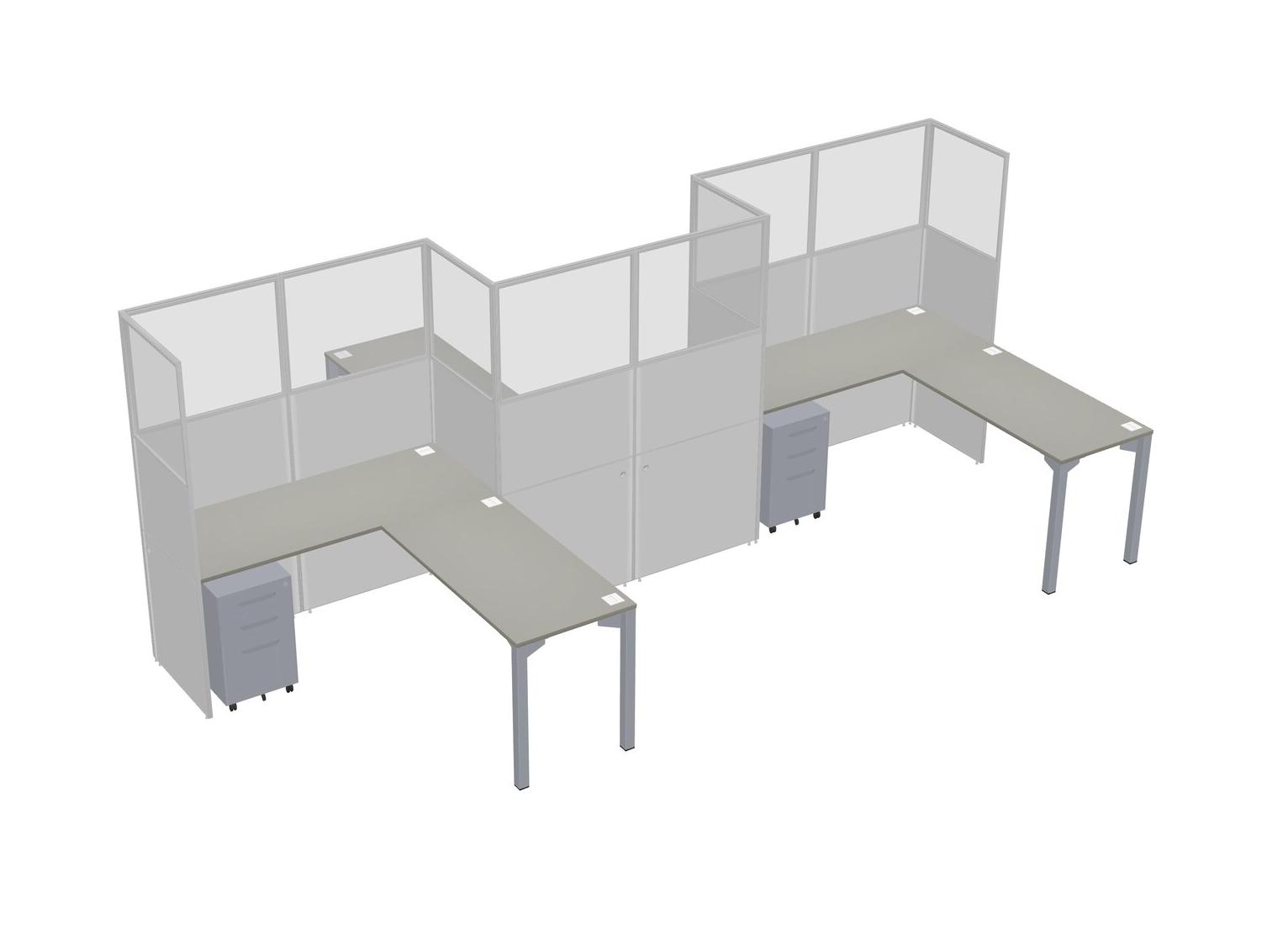 Grey Shadows L-shape Cubicle Workstations For 3 - Zigzag Formation + Grey Metal Mobile Drawers + Panel Return