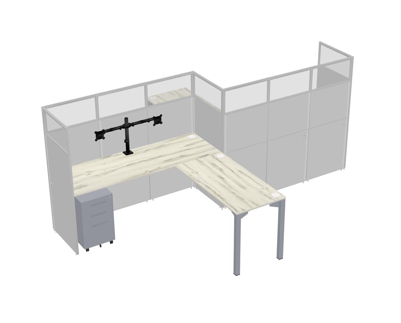 Heinne Holz L-shape Cubicle Workstations For 2 - Zigzag Formation + Grey Metal Mobile Drawers + Panel Return
