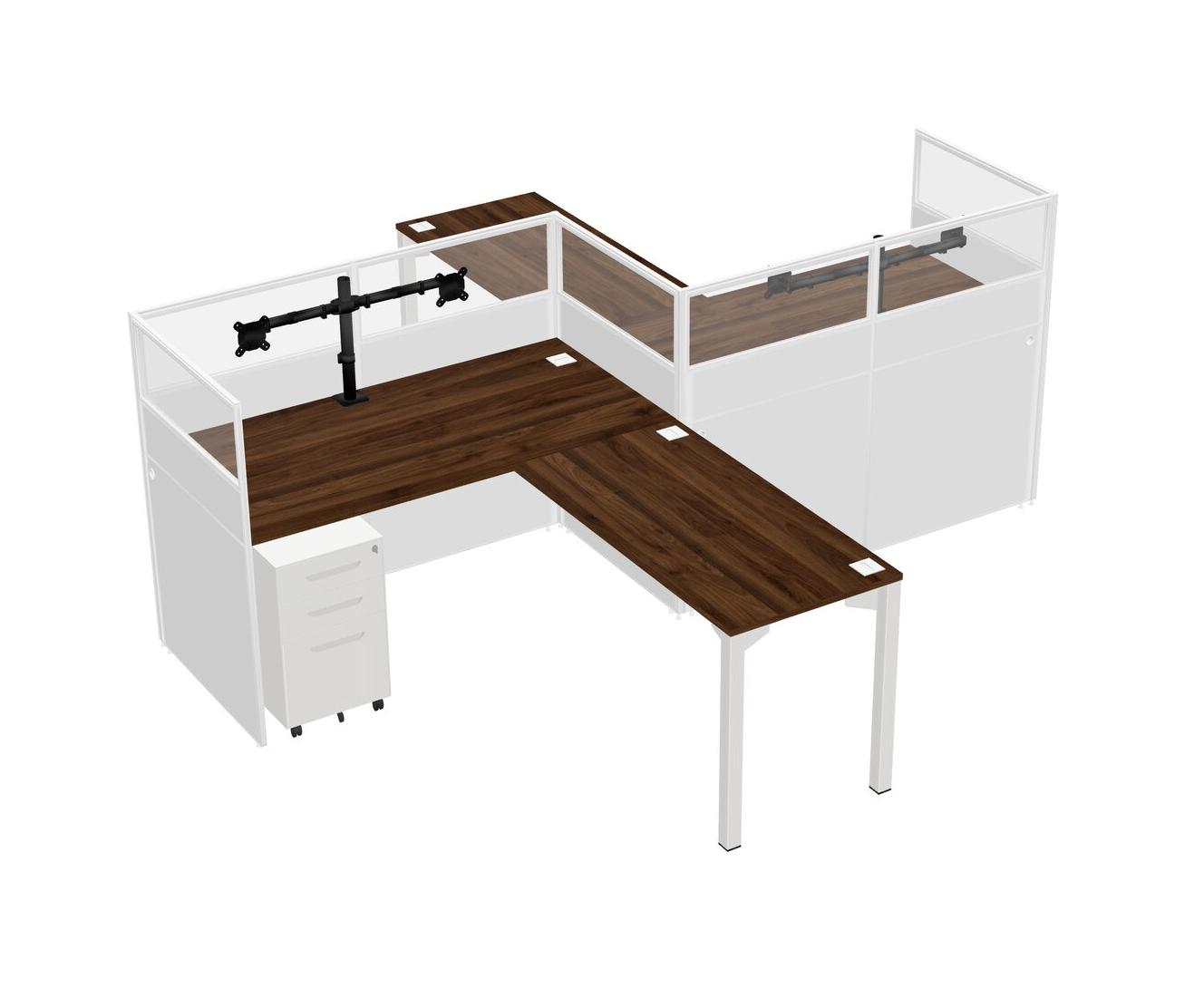 Columbia Walnut L-shape Cubicle Workstations For 2 - Zigzag Formation + White Metal Mobile Drawers + Panel Return