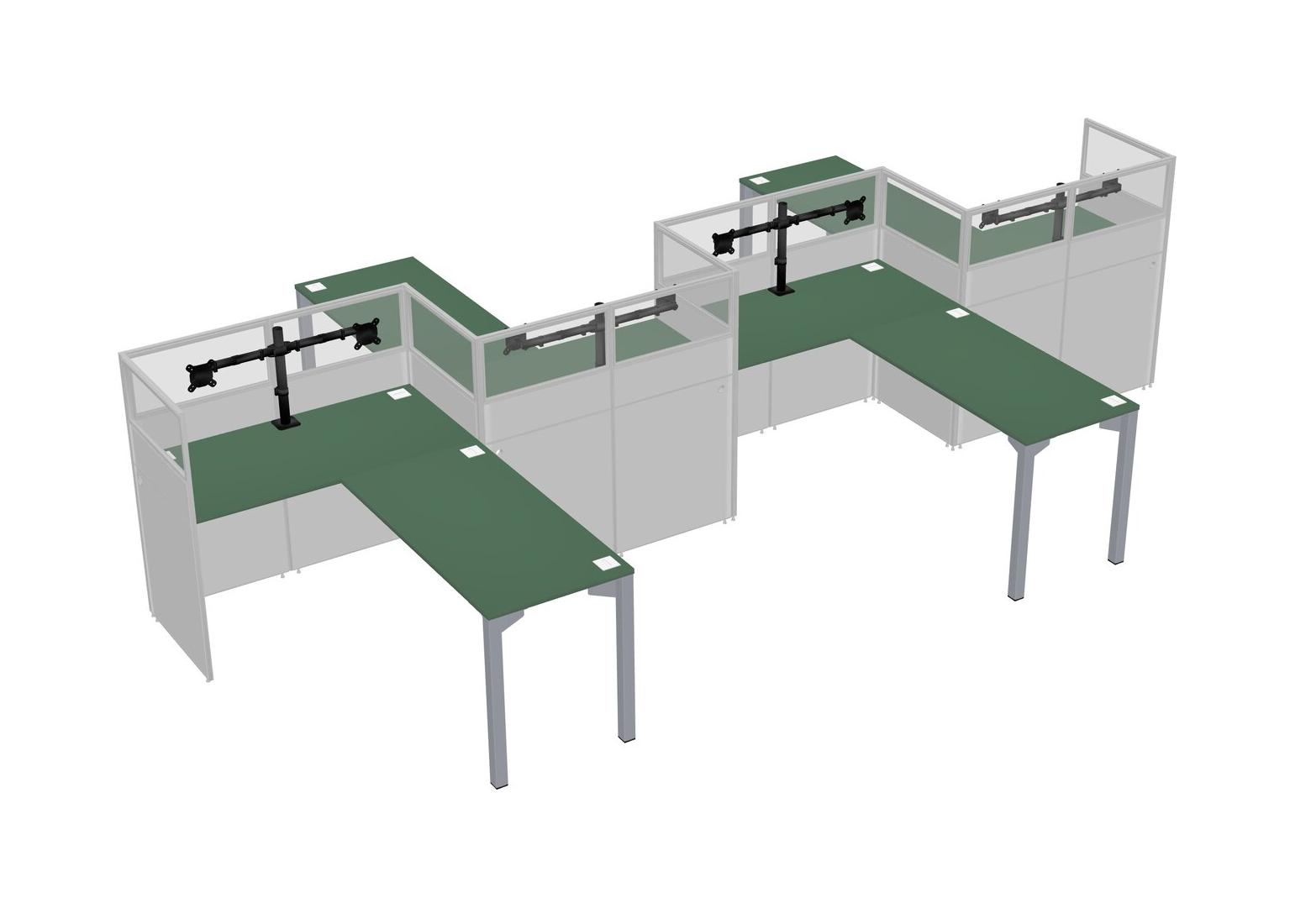 Green L-shape Cubicle Workstations For 4 - Zigzag Formation + Panel Return
