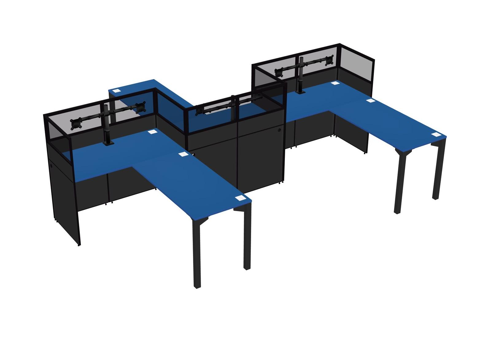 Prism Blue L-shape Cubicle Workstations For 3 - Zigzag Formation + Panel Return